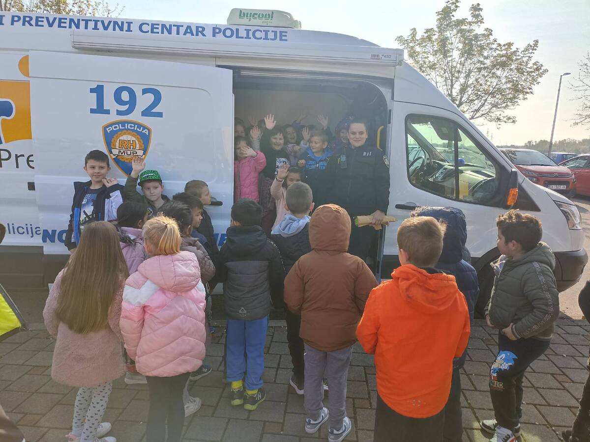 Policajci su predškolcima pokazali pravilan način kretanja prometnicama i ukazali na opasnosti koje im prijete na cesti, a sve kako bi se što bolje pripremili za sigurno sudjelovanje u prometu kada samostalno krenu u školu. Zatim su im pokazali i službeno policijsko vozilo. Predavanje je bilo interaktivno jer su na kraju mogli isprobati to što su naučili. Djeca su jako uživala u posjetu. Kako im je bilo pogledajte u fotogaleriji.