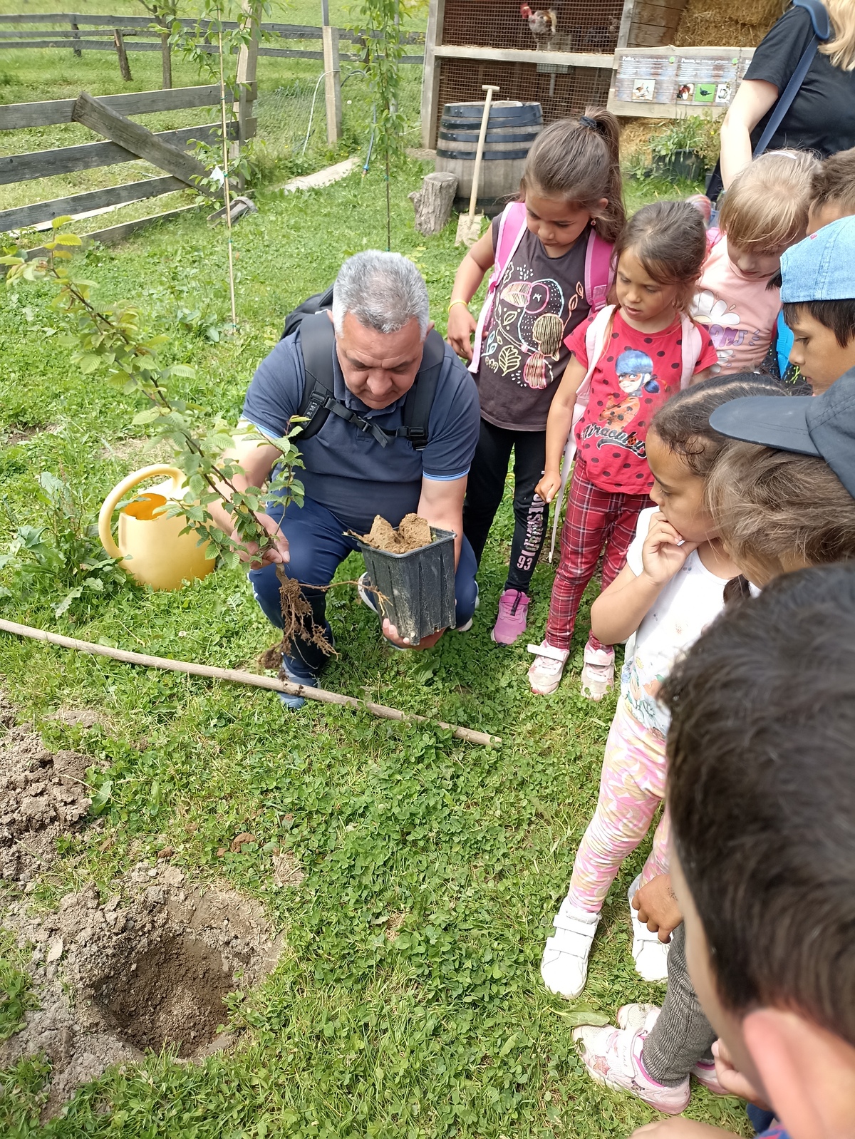 Na velikom imanju imali smo prilike vidjeti puno domaćih životinja, a najdraže su nam bile ovce i magarci. Te smo pitome životinje mogli čak i pomaziti pa smo bili jako uzbuđeni. Kako bi nam ovaj izlet ostao zauvijek u sjećanju, uz pomoć našeg pomagača zasadili smo stablo graba na imanju. Nakon razgledavanja domaćih životinja, vrijeme smo proveli u igri na svježem zraku i uživanju u prekrasnoj prirodi.
