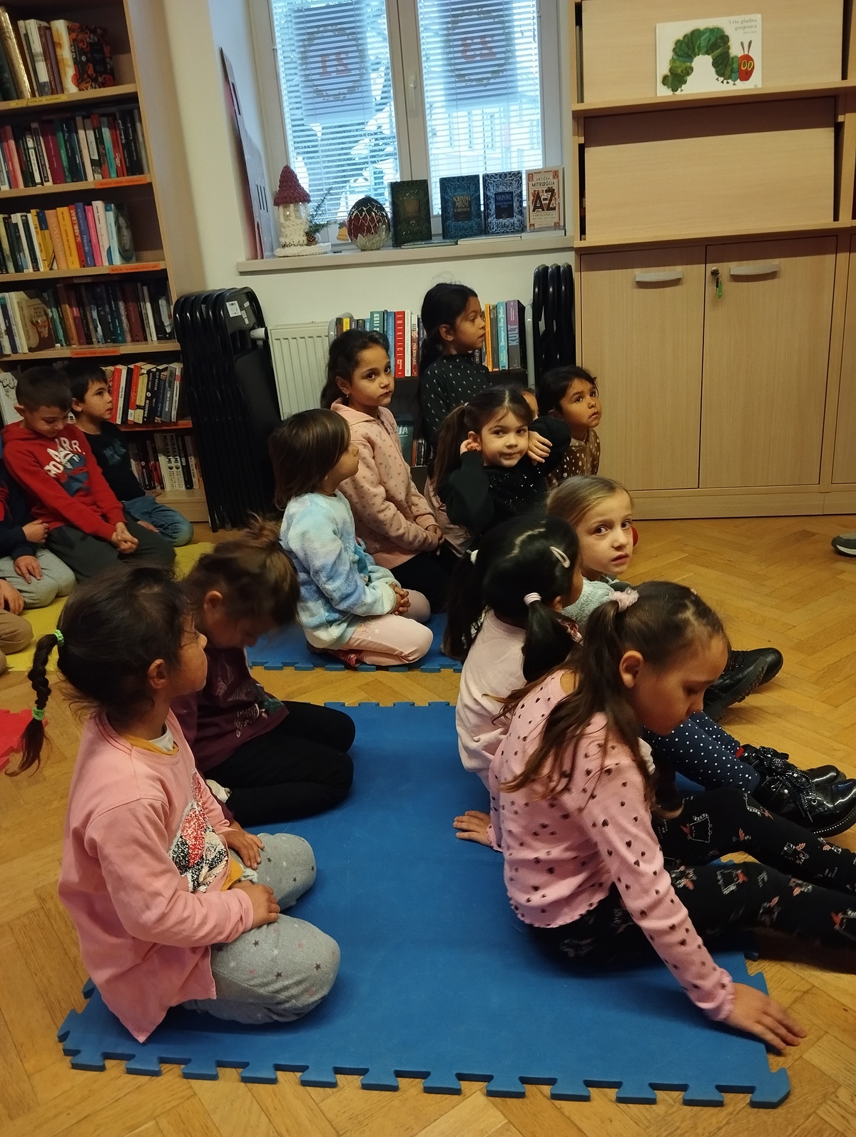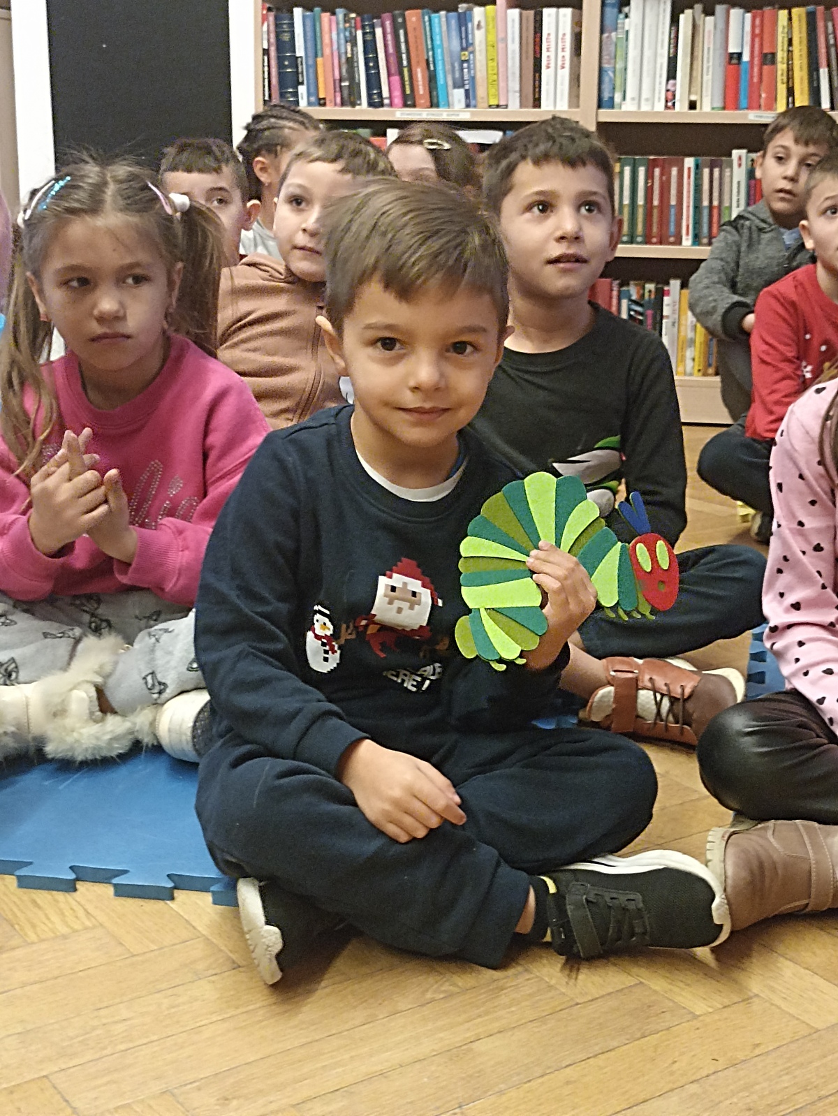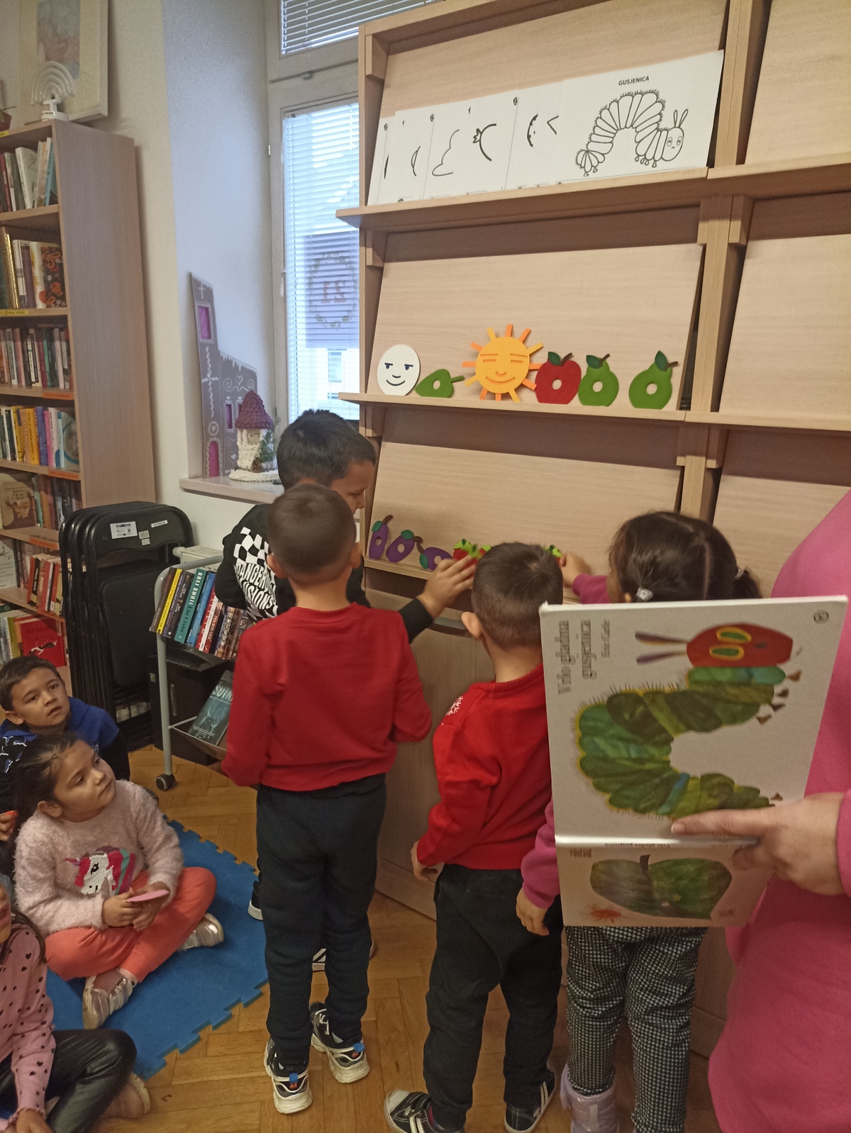 U petak, 13.12.2024.godine, djeca predškolskih skupina "Zečići", "Točkice" i "Žirafice" uputila su se u Prelog. Prvo smo posjetili Knjižnicu i čitaonicu Grada Preloga. Knjižničarka Maja čitala je priču "Vrlo gladna gusjenica", a predškolci su joj pomagali u tome.