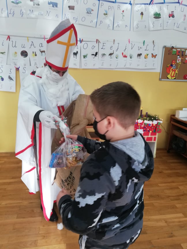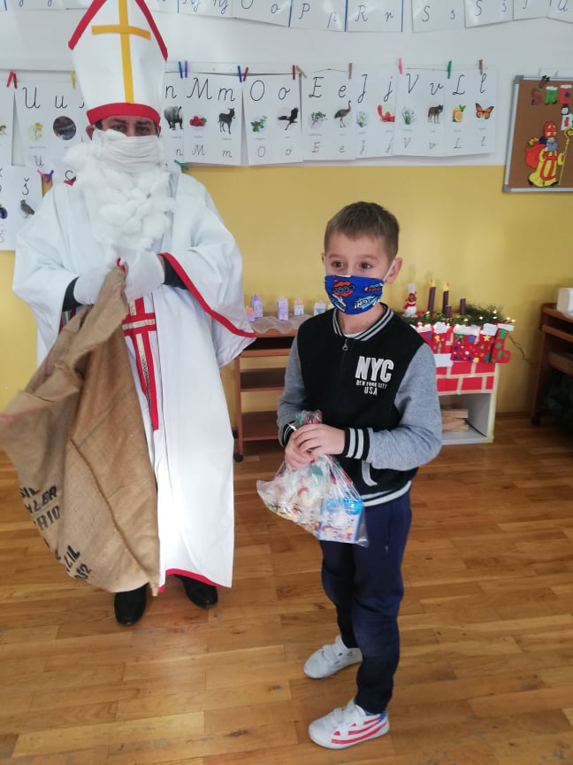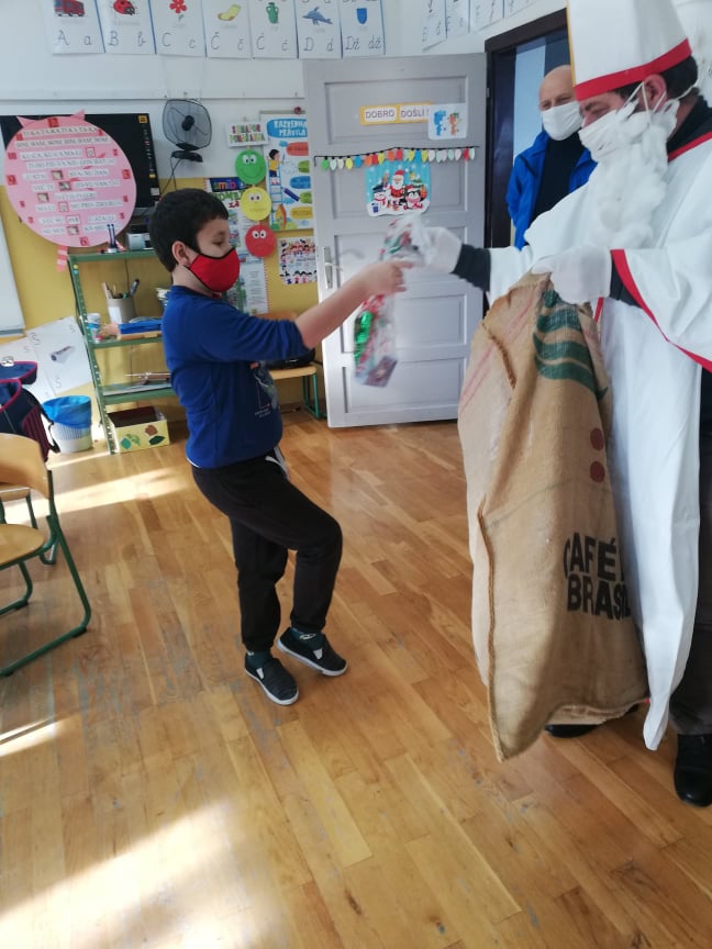 U ponedjeljak nam se želja ostvarila. Molitvom i pjesmom dočekali smo svetog Nikolu. Za nagradu dobili smo poklone koji su nas veoma obradovali. Nakon toga nastavili smo uređivati našu učionicu. Prozore smo ukrasili zaigranim pahuljicama, anđelima i snjegovićima. Složili smo pano u hodniku. Okitili smo bor različitim ukrasima. Dio ukrasa sami smo izradili.