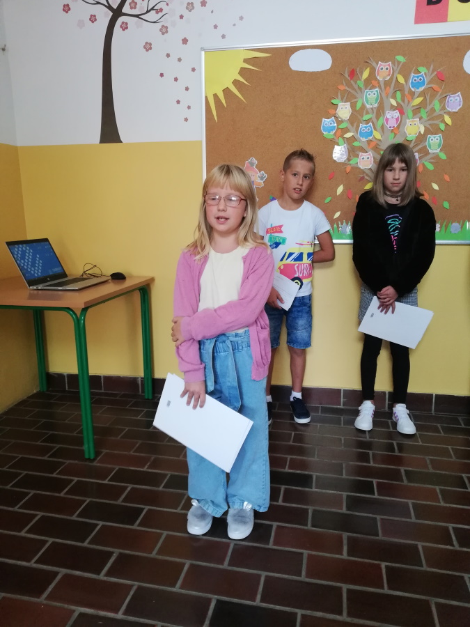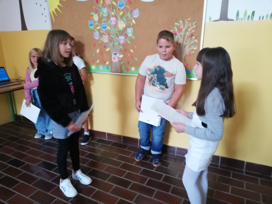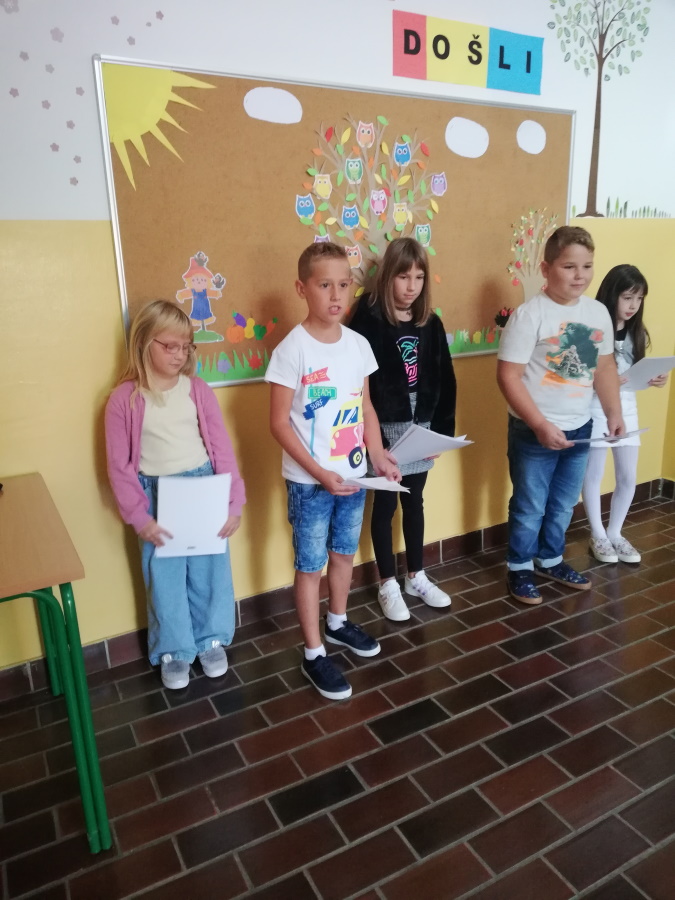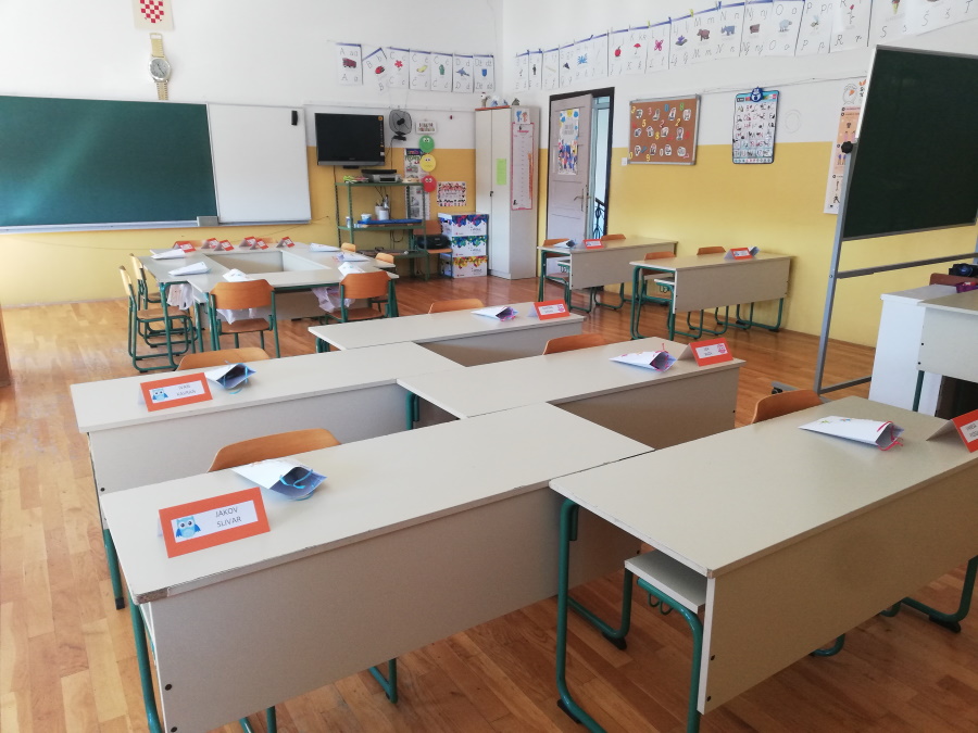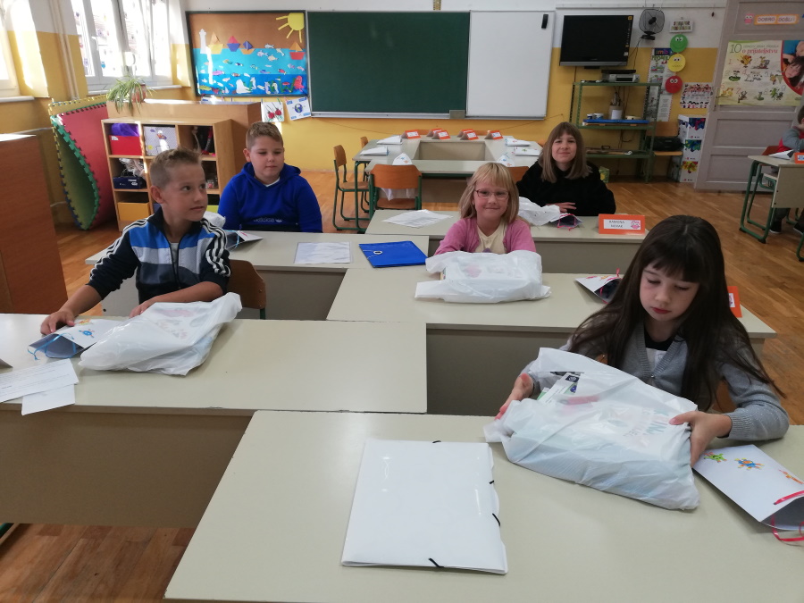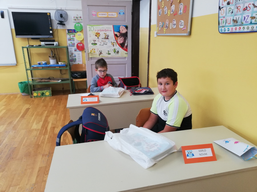 Prvog dana nastave učenici 3.c pripremili su kratku priredbu za svoje nove prijatelje – đake prvake. Sve učenike na klupama su dočekali udžbenici, pisanke, kartice s imenima i mali pokloni iznenađenja.