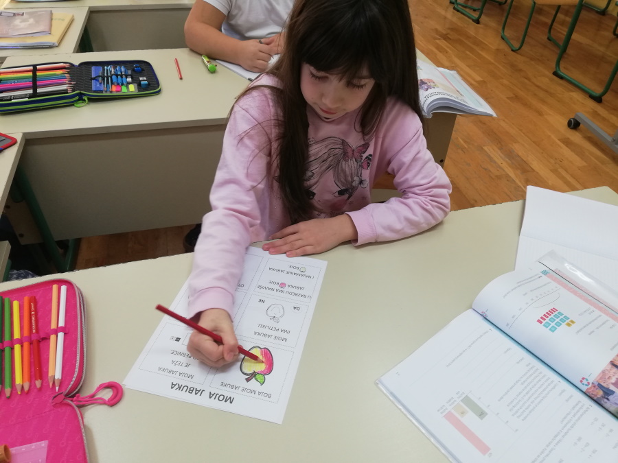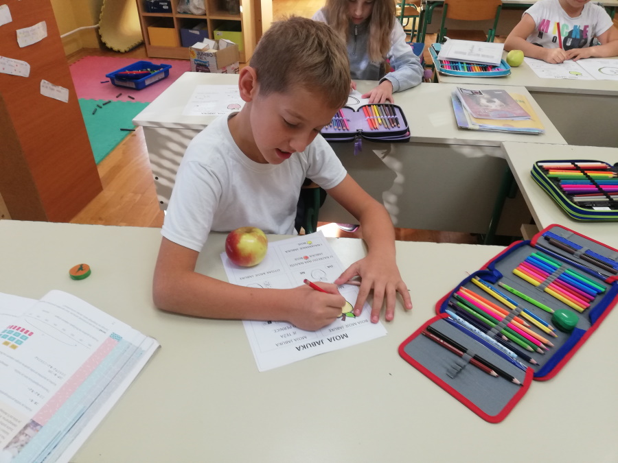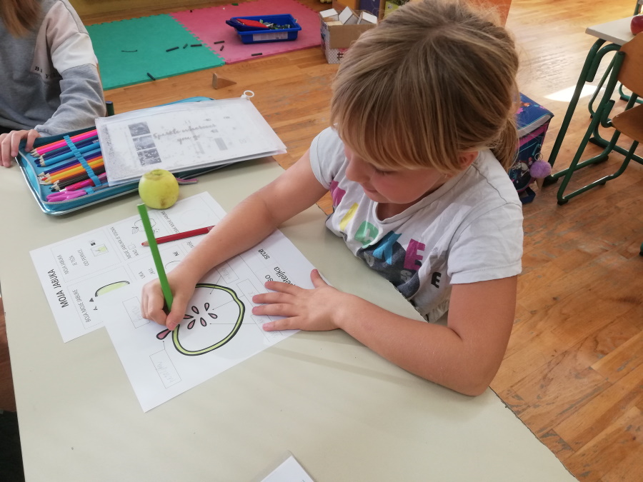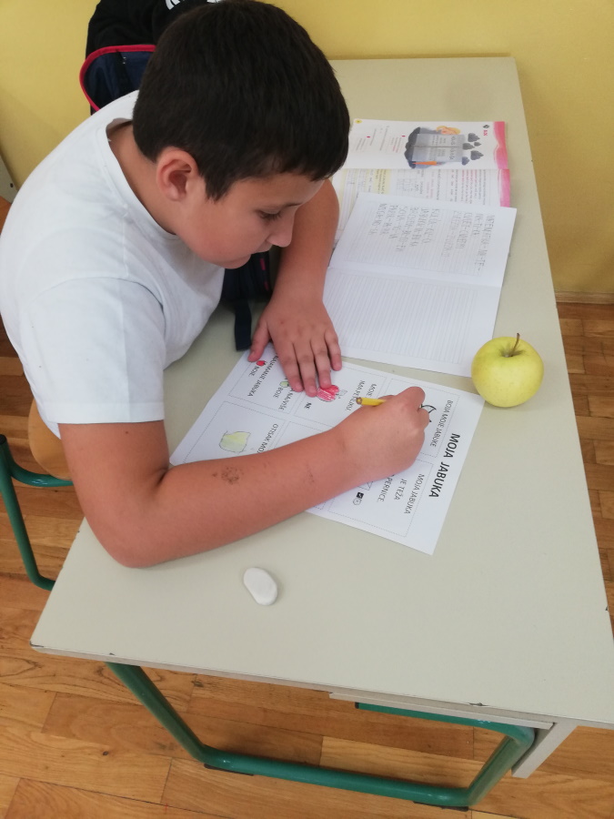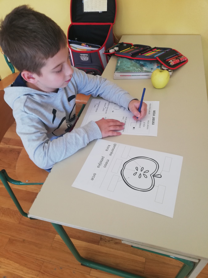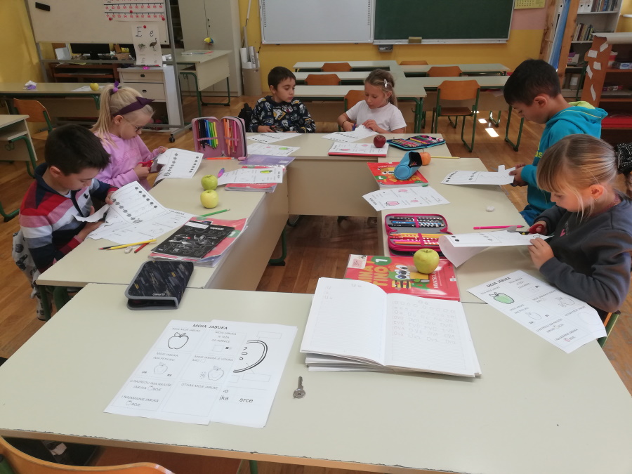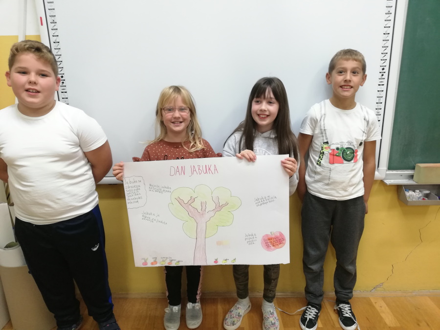 U srijedu, 20.10. obilježili smo Dan jabuka. Degustiranjem žutih i crvenih jabuka zaključili smo da su nam bolje žute. Istražili smo oblik, boju i veličinu svoje jabuke. Saznali koji su dijelovi jabuke i kako od sjemenke nastaje plod. Kolaž papirom slikali smo jabuke. Za izradu plakata proučili smo različite vrste jabuka koje se najviše uzgajaju u Hrvatskoj. Naučili smo da je važno svaki dan jesti jabuku da ostanemo zdravi.