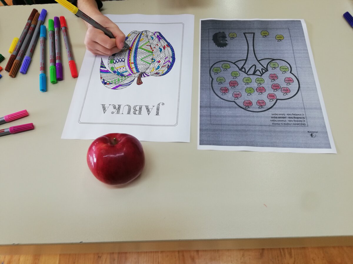 Tom prilikom učenici 1.c/2.d su istražili i saznali zašto je jabuka kraljica voća, koje su najpoznatije sorte jabuka,čitali su priču o jabuci te naslikali jabuke kolaž tehnikom. Učenici 3. c čitali su igrokaz Muke zbog jabuke u kojem djevojčica Ivana ima mnogo muka zbog pisanja sastavka o jabukama. Dobili su zadatak napisati sastavak o jabukama prema slici. Nakon toga rješavali su matematičke zadatke o jabukama. Učenici 4.c čitali su pjesmu o jabukama. Pročitali su i zanimljivost o jednom stablu jabuke na kojem raste 120 sorti jabuka i 20 sorti krušaka te dobili zadatak istražiti kako je to moguće. Rješavali su listić sa stablom jabuke gdje su morali odrediti rod imenica te su bojali mandalu jabuke. Za kraj smo se svi počastili finim slatkim jabukama. Zaključili smo da su jabuke jako dobre za zdravlje i da ih treba često jesti jer sadrže puno vitamina i minerala.
