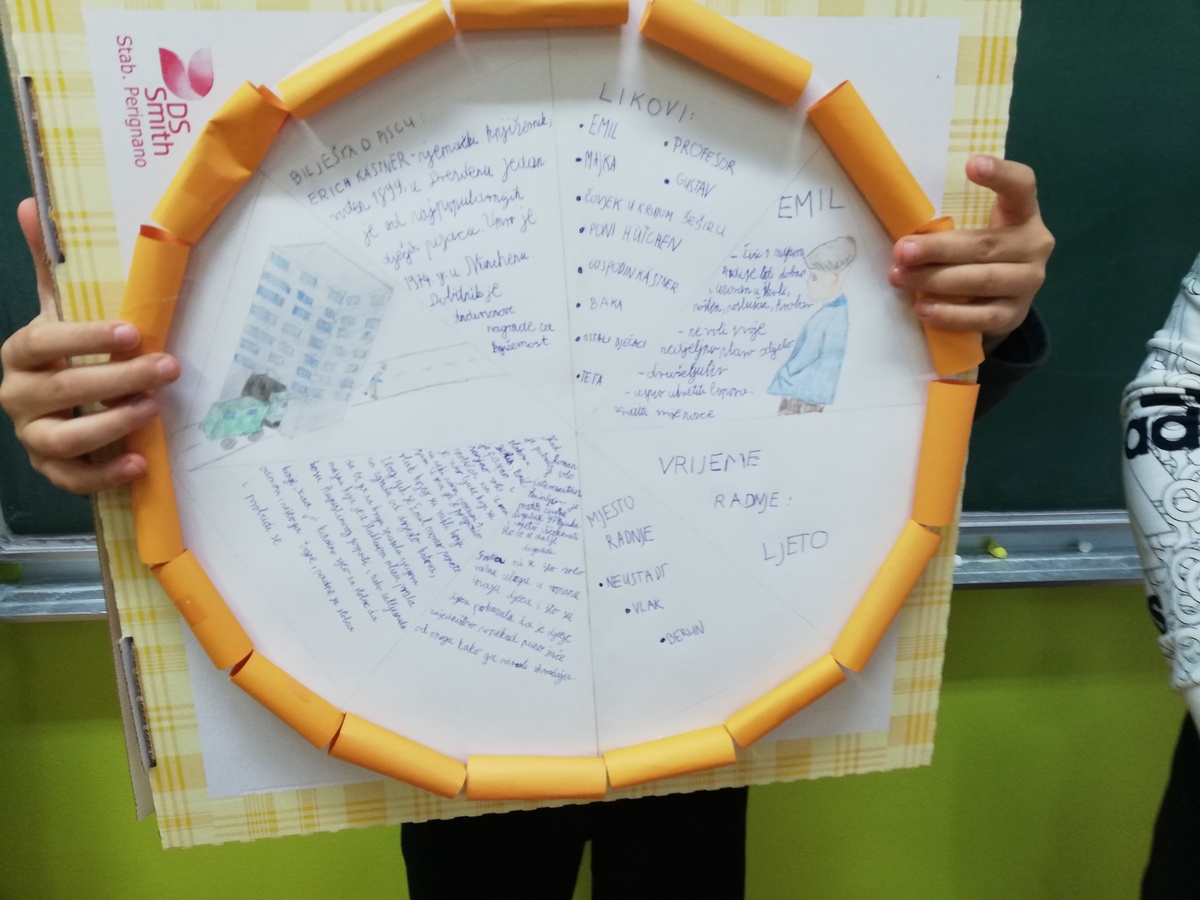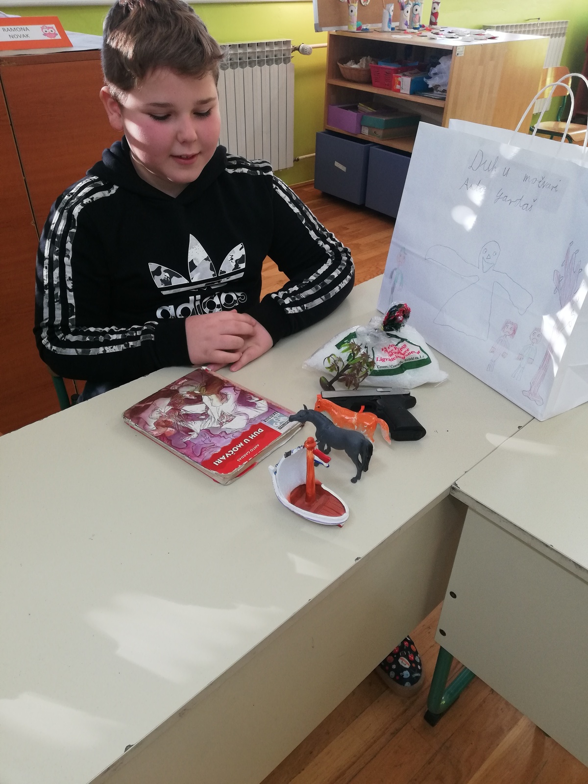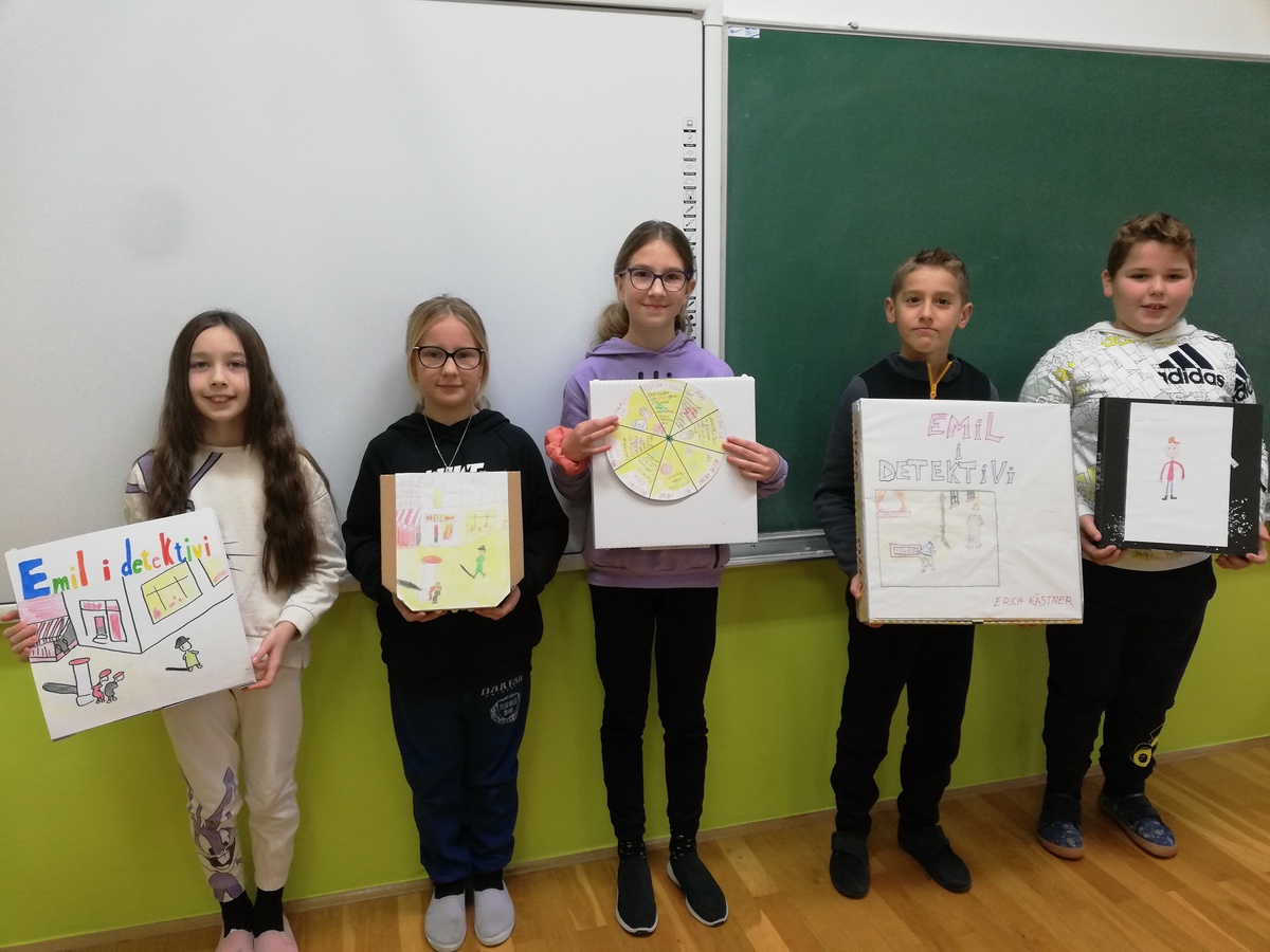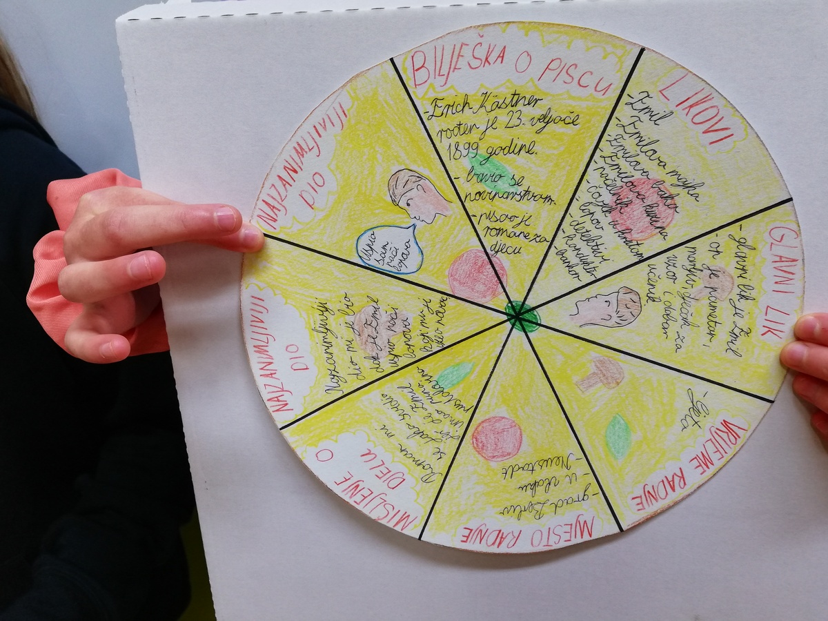 Prisjetili smo se i ponovili lektiru iz vrećice. Učenici 3.c prezentirali su dječji roman Vlak u snijegu dok su učenici 4.c prezentirali dječji roman Duh u močvari. Oslikali smo vanjske strane vrećica i unutra stavili po 5 predmeta koji se spominju u romanima. Bilo je tu raznolikih predmeta: naranči, sendviča, lokomotiva, snijega, lopate, papirnatih tanjura, svjetiljki, bijelog platna, gumba, čamaca, životinja…. Naučili smo pisati pizza lektiru. Našu pizza lektiru za roman Emil i detektivi smjestili smo u ilustriranu kutiju s naslovnicom romana. Tekst za interpretaciju napisali smo na okrugli papir u obliku izrezanih kriški pizze. Našla se tu i pizza s punjenim rubovima. Ovakav način interpretacija nam je zanimljiviji, a ujedno vježbamo i izlaganje pred cijelim razredom.