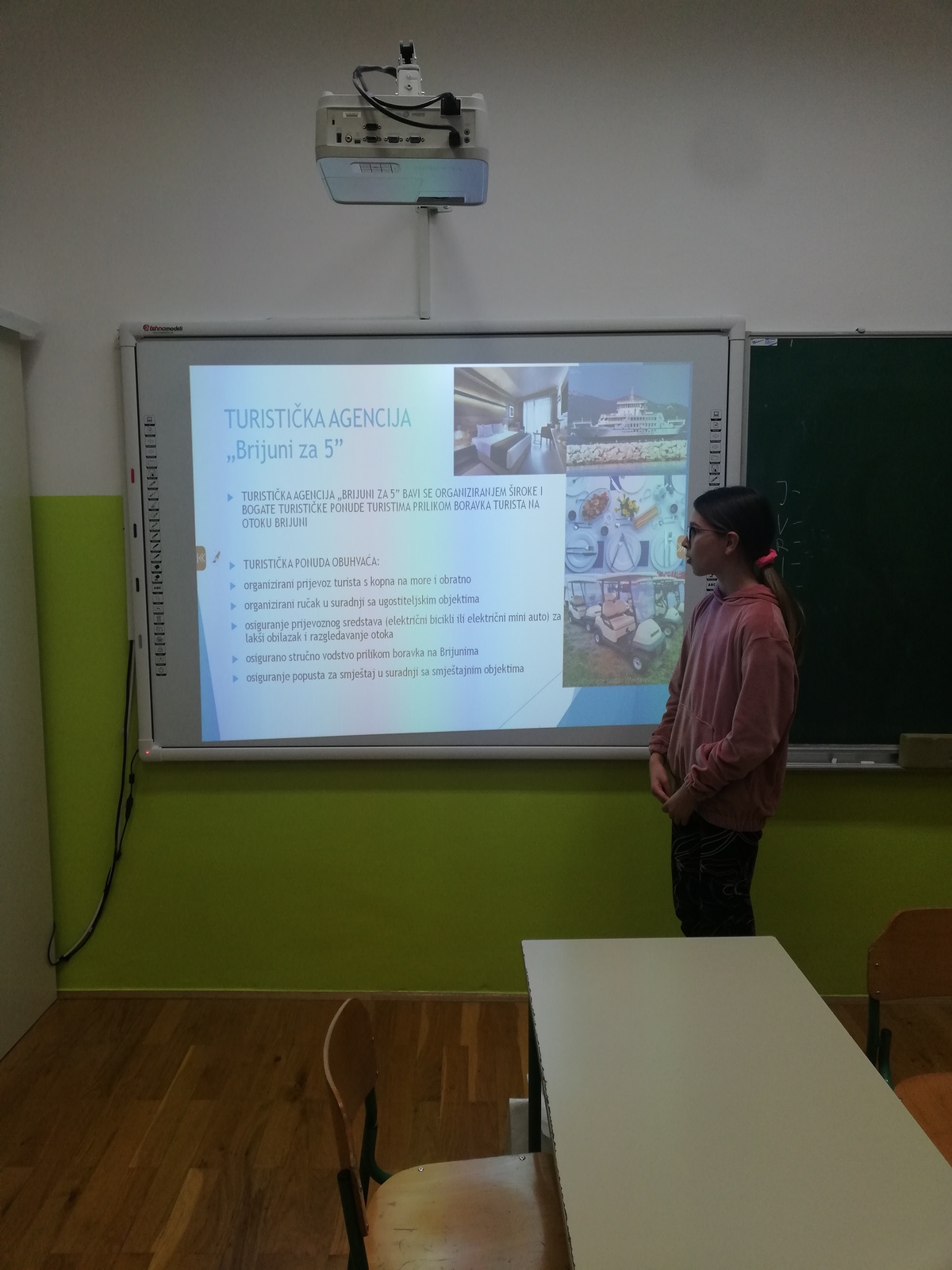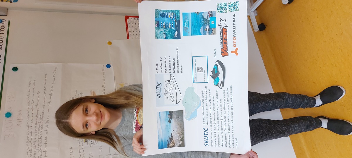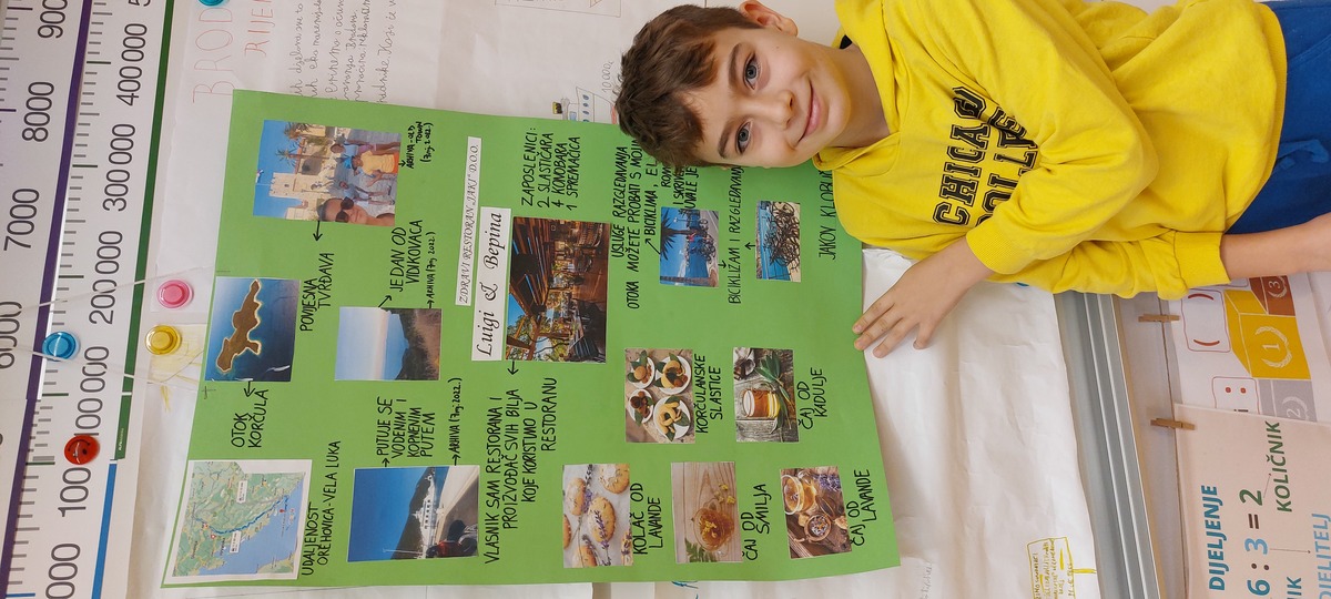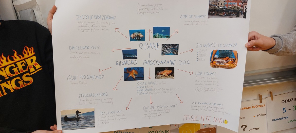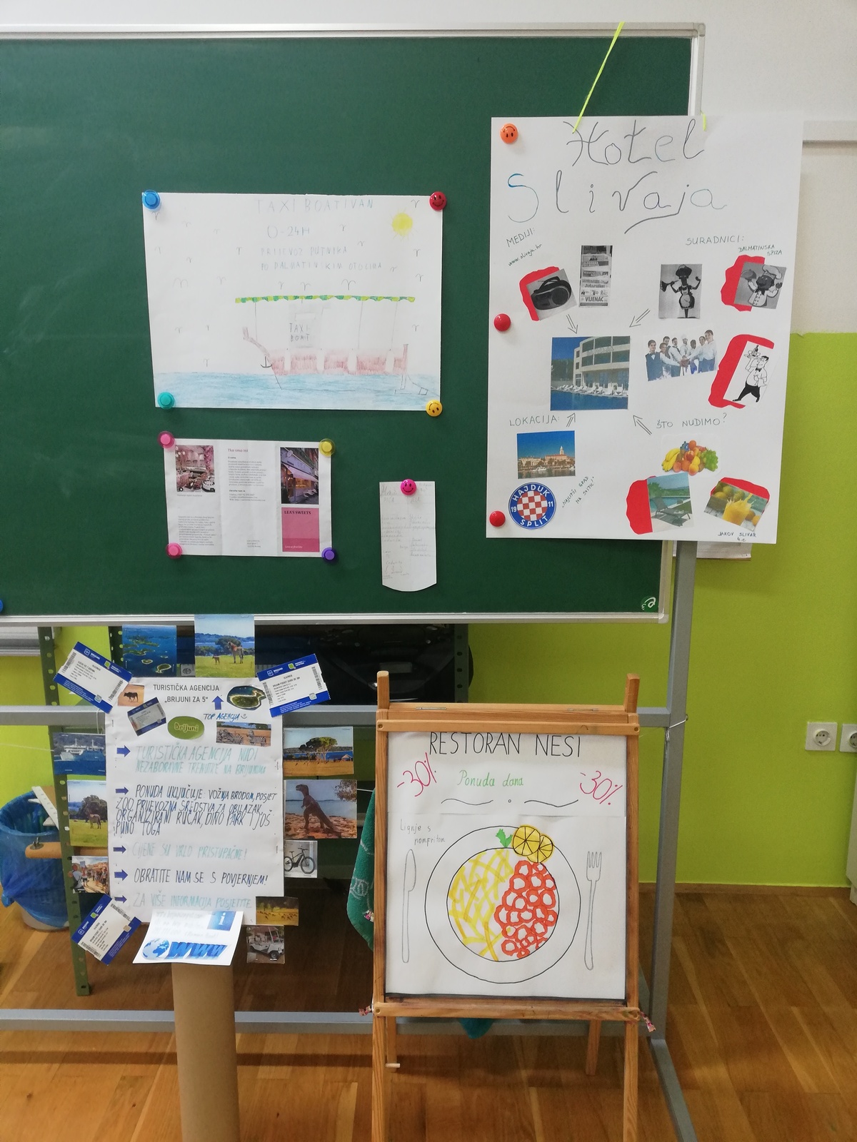 „Zamisli da možeš osnovati tvrtku/obrt/uslužnu djelatnost u primorskom kraju. Čime će se tvoja tvrtka baviti s obzirom na kraj u kojem ju otvaraš? Hoće li ona biti vezana uz turizam (planinarenje, sport, rekreacija, seoski…), maslinarstvo, brodogradnju…? Kako ćeš svoje proizvode ponuditi kupcima na tržištu? (gdje ćeš se prezentirati, kako, osmisli reklamu, plakat, web stranicu…) Tko ti je potreban od suradnika? Čime će se baviti tvoji suradnici?“ Na dogovoreni Dan malih poduzetnika učenici su prezentirali svoje djelatnosti. Bilo je tu plakata, prezentacija, brošura.. Poduzetničke ideje bile su zanimljive, kreativne i maštovite. Mali poduzetnici razmišljali su o ljudima koji žele uživati, odmoriti, opustiti te su za njih osmišljeni welness sadržaji. Mnogi su vodili računa o onima koji vole godišnji provesti aktivno - planinarenjem, sportovima na vodi, trčanjem i bicikliranjem. Nakon predstavljanja mogli smo rezervirati svoje ljetovanje iz snova.