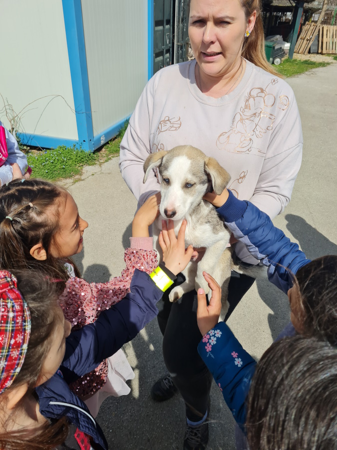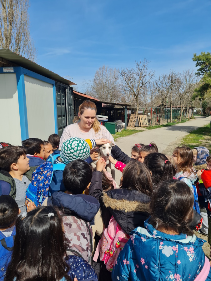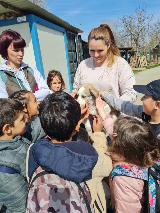Zatim su krenuli put Skloništa za napuštene životinje "Prijatelji". Po dolasku, učenici su djelatnicama predali prikupljenu hranu. Razgledali su sklonište, saznali tko i kako brine o napuštenim životinjama, koliko ih ima, kojih su pasmina napušteni psi. Naučili su kako se odgovorno i čovječno ponašati prema životinjama te koji uvjeti trebaju biti zadovoljeni kako bi mogli udomiti psa. Učenici su imali prilike pomaziti psića koji je prije svega dva mjeseca stigao u Sklonište sa svojih šestero braće.