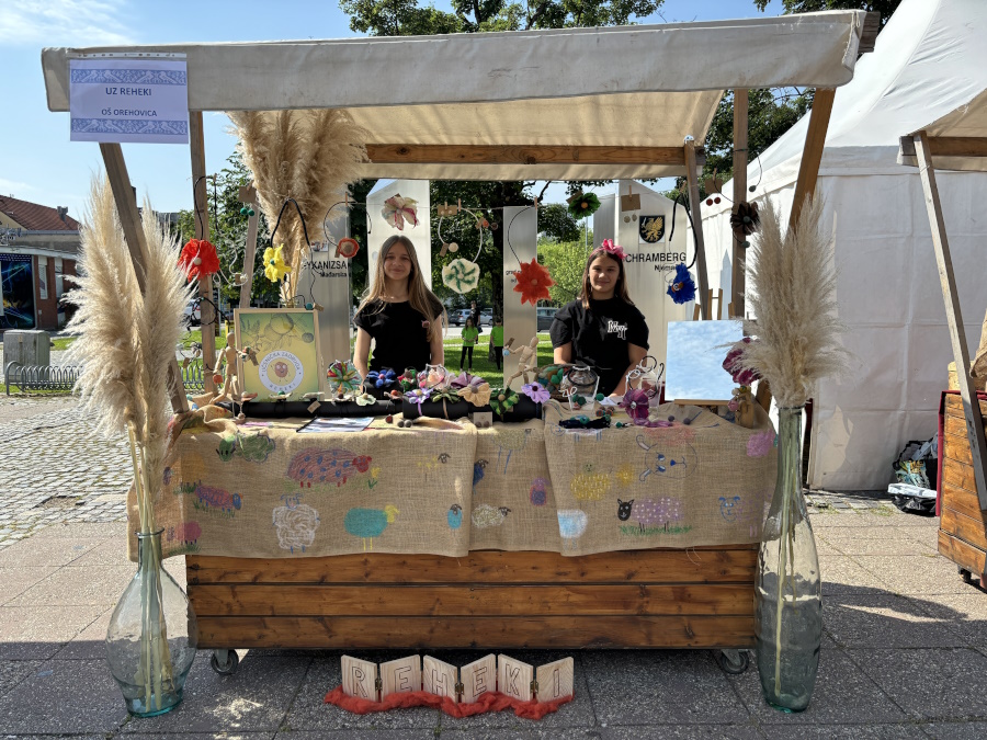 Voditeljica zadruge Matea Herman Talaš, voditeljica likovne sekcije Sara Sabol i zadrugarke Lora Drvenkar i Nina Novosel predstavljale su našu školu i učeničku zadrugu Reheki u Čakovcu na Trgu republike gdje su se okupili predstavnici učeničkih zadruga međimurskih škola.