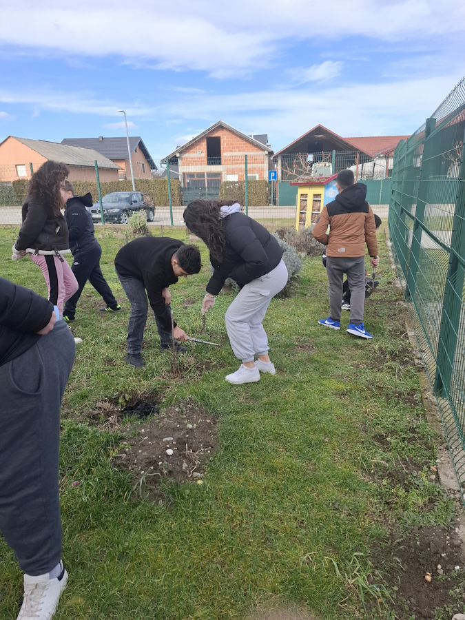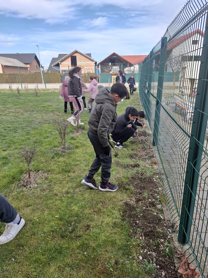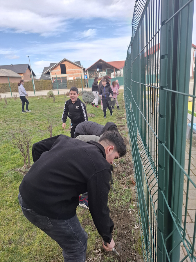 Učenici 7.a razreda su na satu razrednog odjela razgovarali o Holokaustu i nakon toga u školskom dvorištu sadili lukovice šafrana kao simbol 2 milijuna djece stradalih u Holokaustu.
