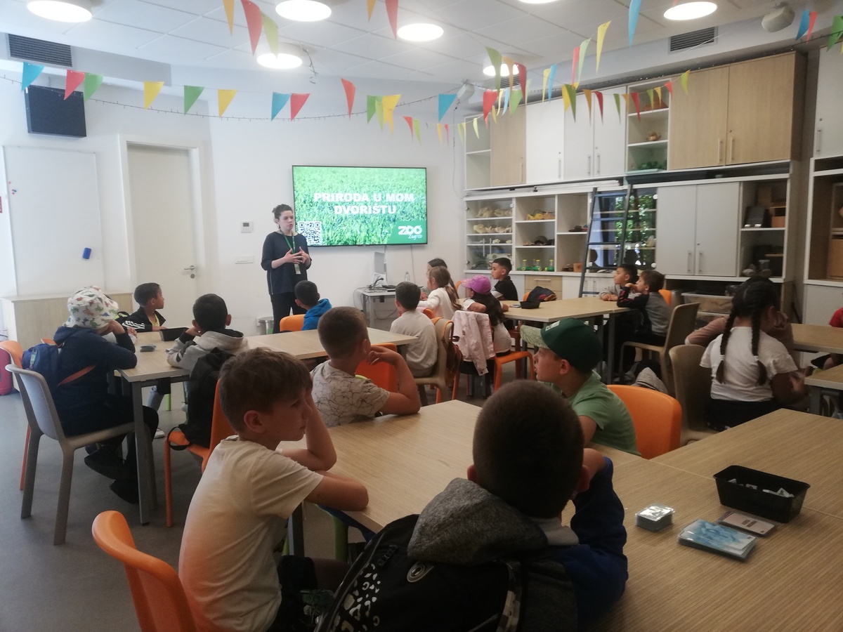 Naziv radionice bio je “Priroda u mom dvorištu” na kojoj su učenici po skupinama odigrali zanimljivu igru. Nakon radionice, na poklon smo za našu školu dobili kućicu za ptice, koju ćemo postaviti u školskom vrtu. Nestrpljivo očekujemo prve stanovnike. Znatiželjno smo promatrali sve divlje životinje ZOO vrta, a veselili smo se i domaćim kozicama... Nakon razgledavanja, poigrali smo se na dječjem igralištu u parku Maksimir. Budući da je taj dan dio Dan sporta, za kraj smo otrčali kros. Najbrže djevojčice i dječaci dobili su diplome. Pomalo umorni, u popodnevnim satima smo se sretno vratili svojim kućama.