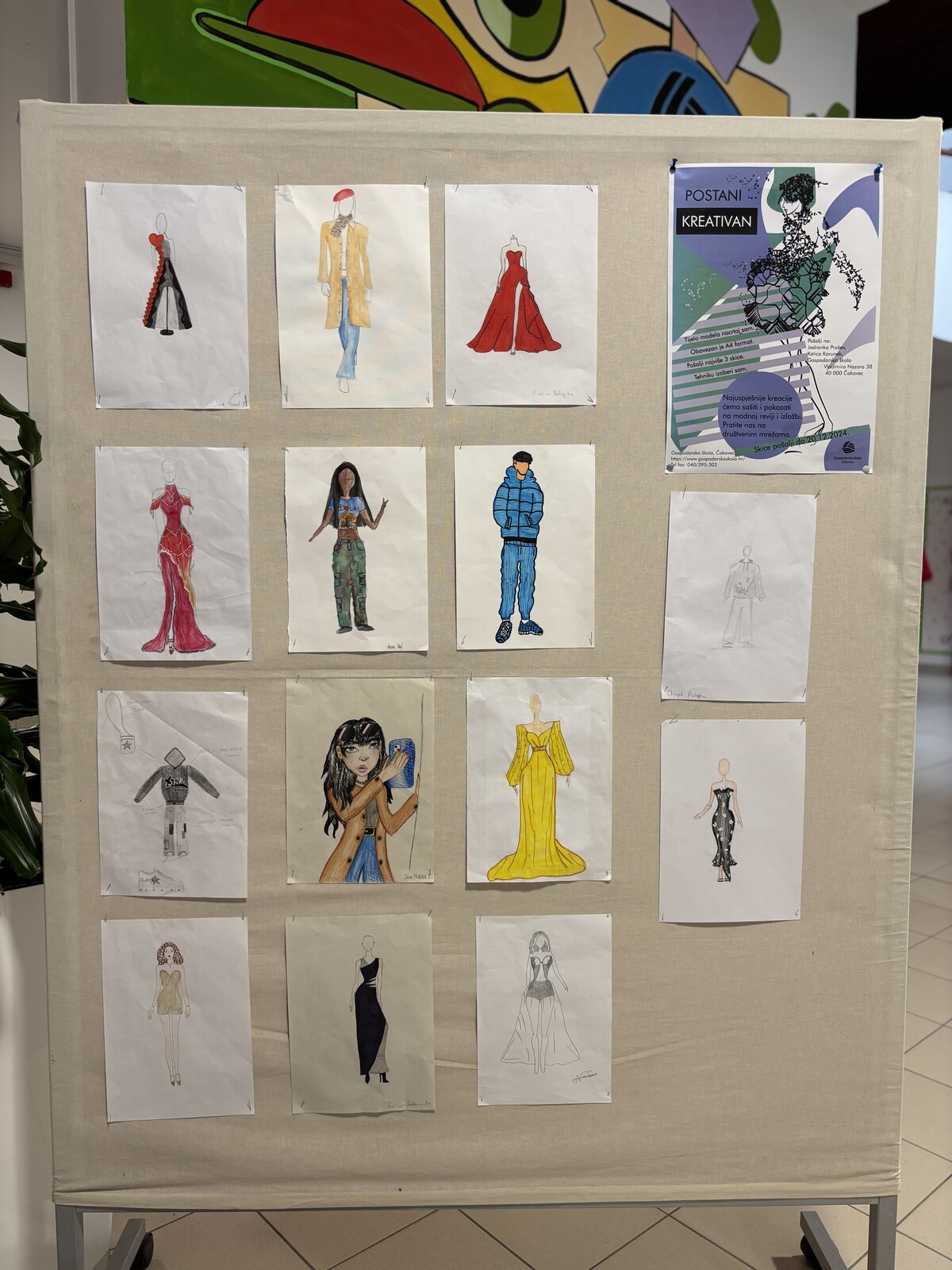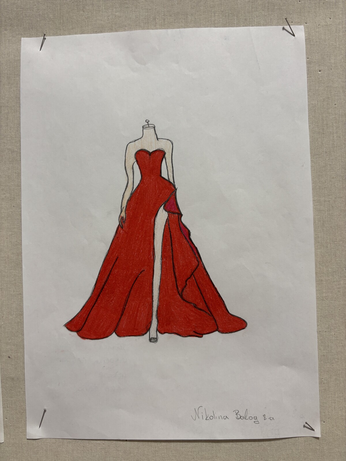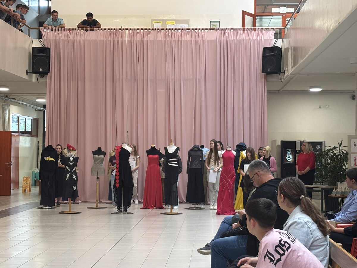 ,gdje mašta susreće stvarnost, a crtež postaje kroj koji diše na pisti. Kroz projekt učenici nisu samo razvijali svoju maštu i estetski izraz, već su zakoračili i u svijet mode, dizajna i umjetničkih zanimanja – onih što spajaju umijeće ruku i ljepotu vizije: poput krojača, modnih tehničara i dizajnera. Ponosno ističemo da su na ovom kreativnom putovanju sudjelovale i naše učenice: Lara Krčmar, Nikolina Balog i Alina Oršoš, uz podršku i vodstvo mentorice Sare Sabol, čije su oči znale prepoznati iskru umjetnosti u svakom crtežu. Od pristiglih 119 radova iz 17 škola međimurske županije, odabran je i crtež naše Nikoline Balog! A njezina skica – vizija crvene haljine – pretvorena je u stvarnost: haljinu boje vatre, izrađenu od lepršavog materijala koji pleše s korakom, govori bez riječi i nosi u sebi mladenački san o ljepoti, slobodi i izražavanju. Time su Nikolina i njezina mentorica Sara osvojile su Modnog Oskara, priznanje koje slavi kreativnost, trud i jedinstvenu umjetničku viziju!