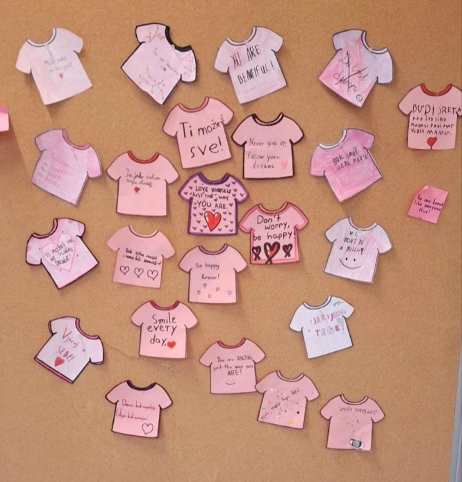 Posebno mjesto u školskom hodniku zauzeo je pano prijateljstva na kojem su učenici pisali poruke podrške, ohrabrenja i lijepe riječi. Ovim aktivnostima željeli smo dodatno osvijestiti koliko su riječi i postupci važni te potaknuti učenike da budu podrška jedni drugima – ne samo danas, nego svakoga dana.