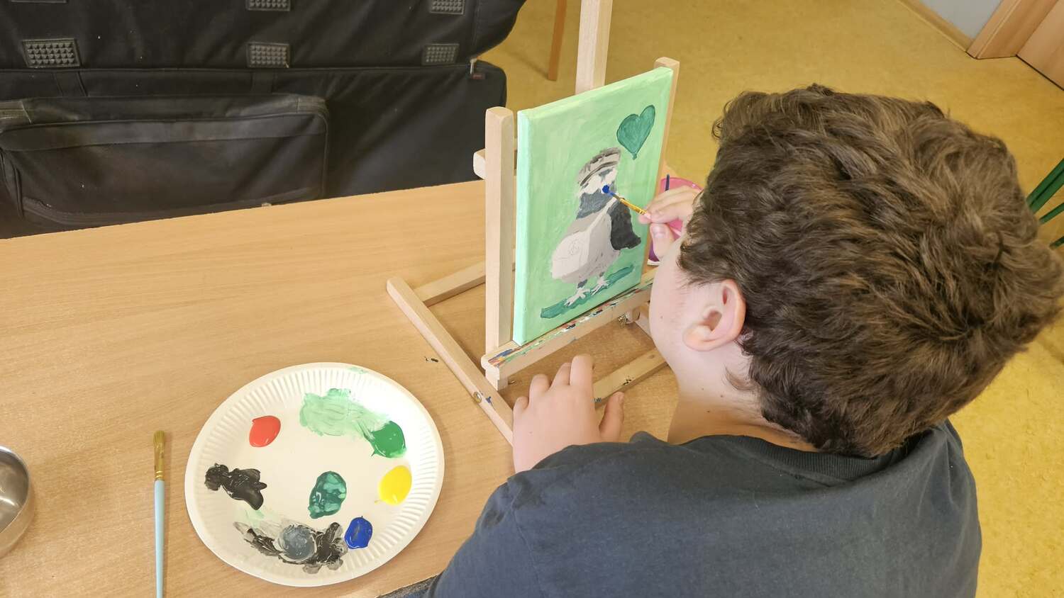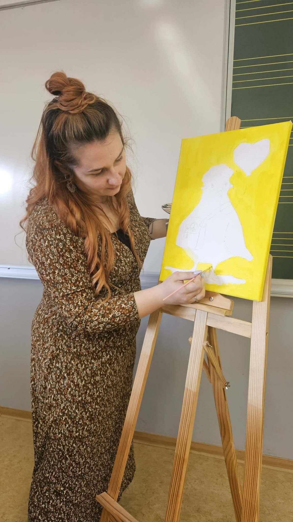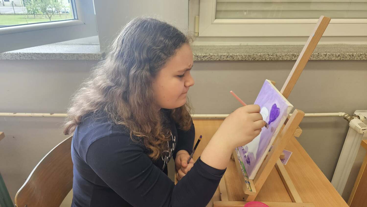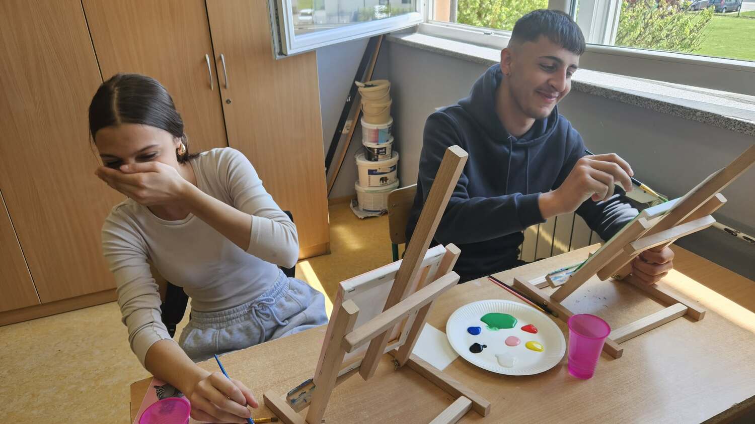 Učenici 6. i 7. razreda na platnu su akrilnim bojama oslikavali lik goluba, a radionicu je vodila učiteljica likovne kulture Sara Sabol. Oslikavajući zajedno s njom, guštajući u finom vrućem čaju i laganoj muzici, učenici su svojom kreativnošću i bojama oživjeli lik goluba i tako su nastali predivni radovi koji sada krase hol naše škole. Jedan je našao svoje mjesto i u knjižnici.