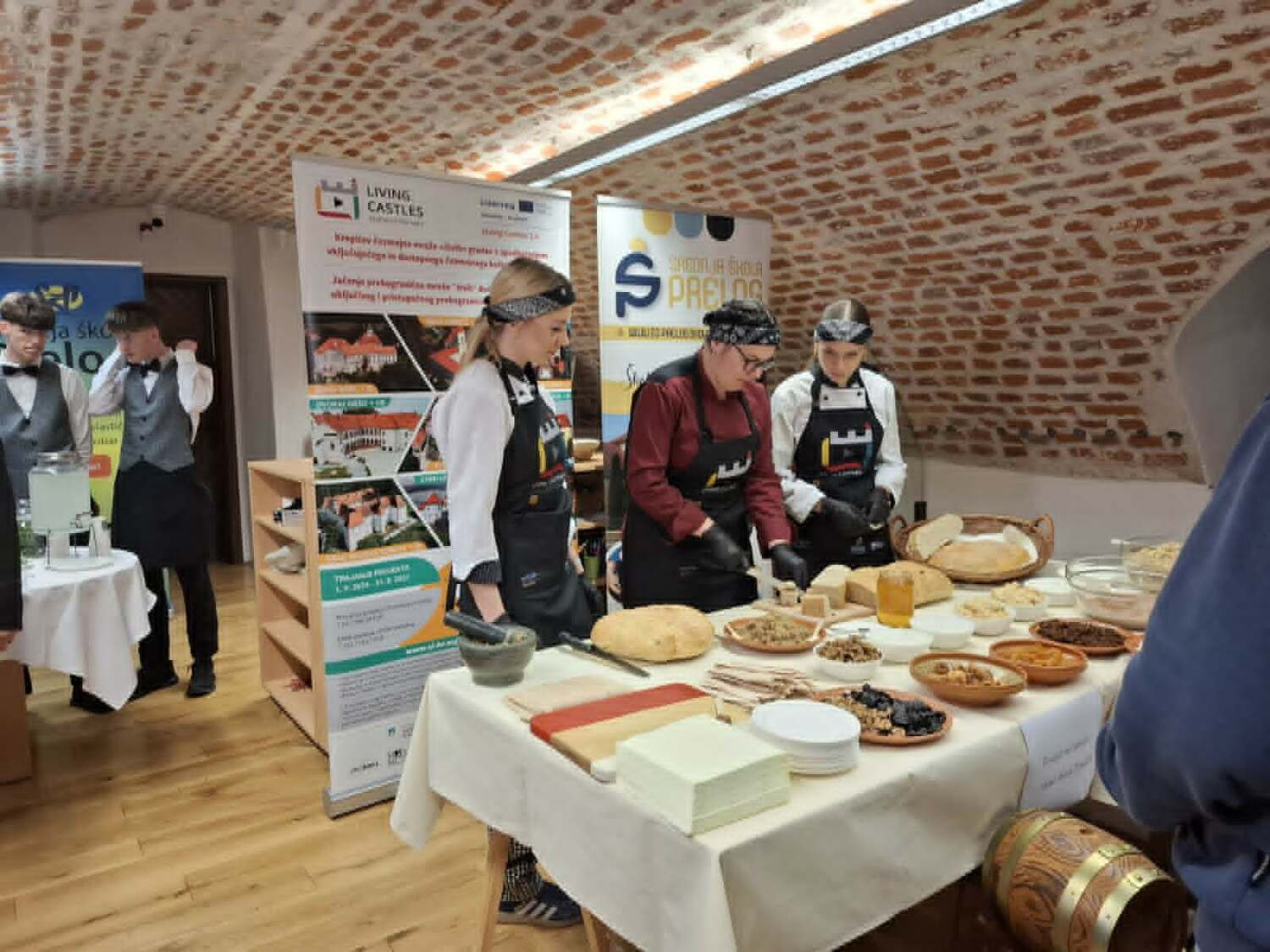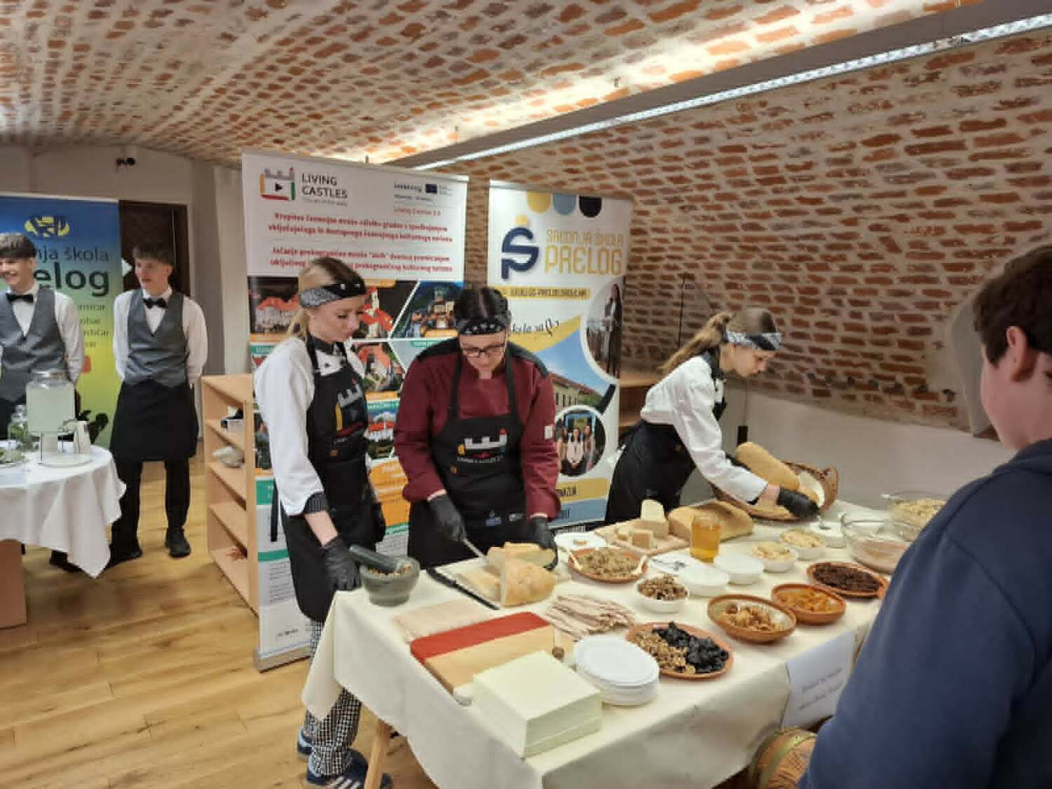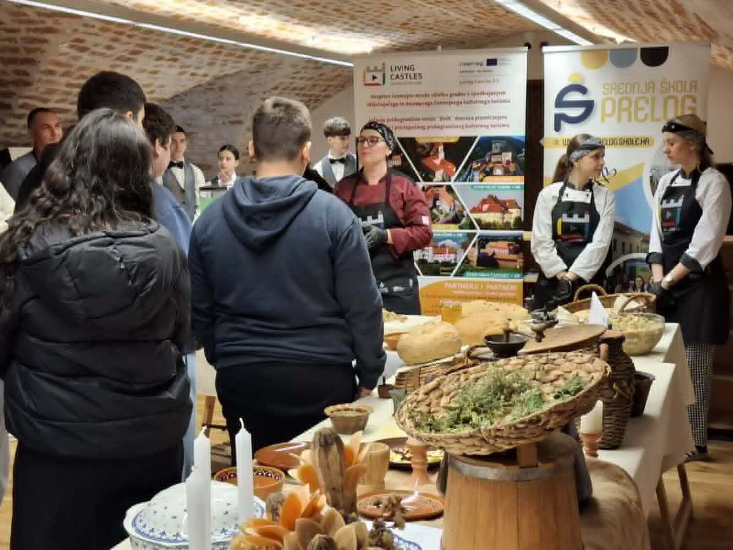 Poslušali smo zanimljivo predavanje o hrani, kuhinji i običajima blagovanja u vrijeme obitelji Zrinski. Učenici Srednje škole Prelog, uz podršku svojih mentora, pripremali su tradicionalna jela kakva su se nekoć posluživala u obitelji Zrinski pa smo tako mogli kušati jelovnik na kojem su se našli razni tradicionalni specijaliteti, uključujući namaze, hladne salate te domaće napitke poput soka od bazge, jabuke i mente.