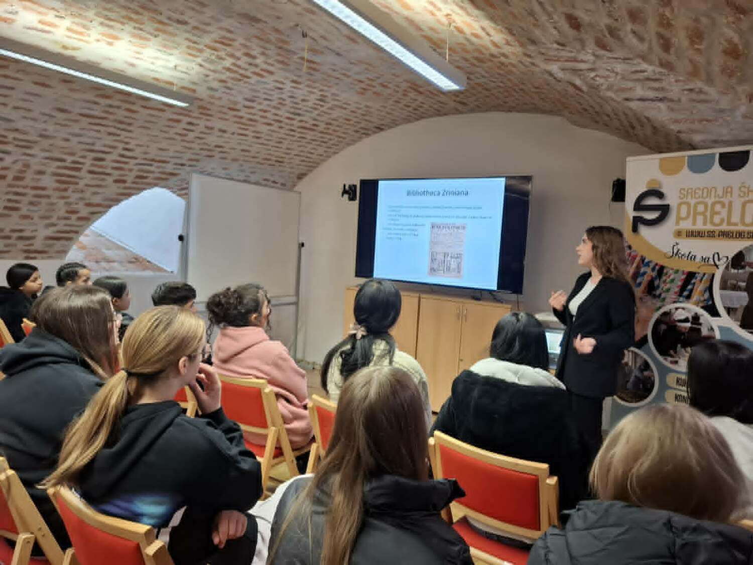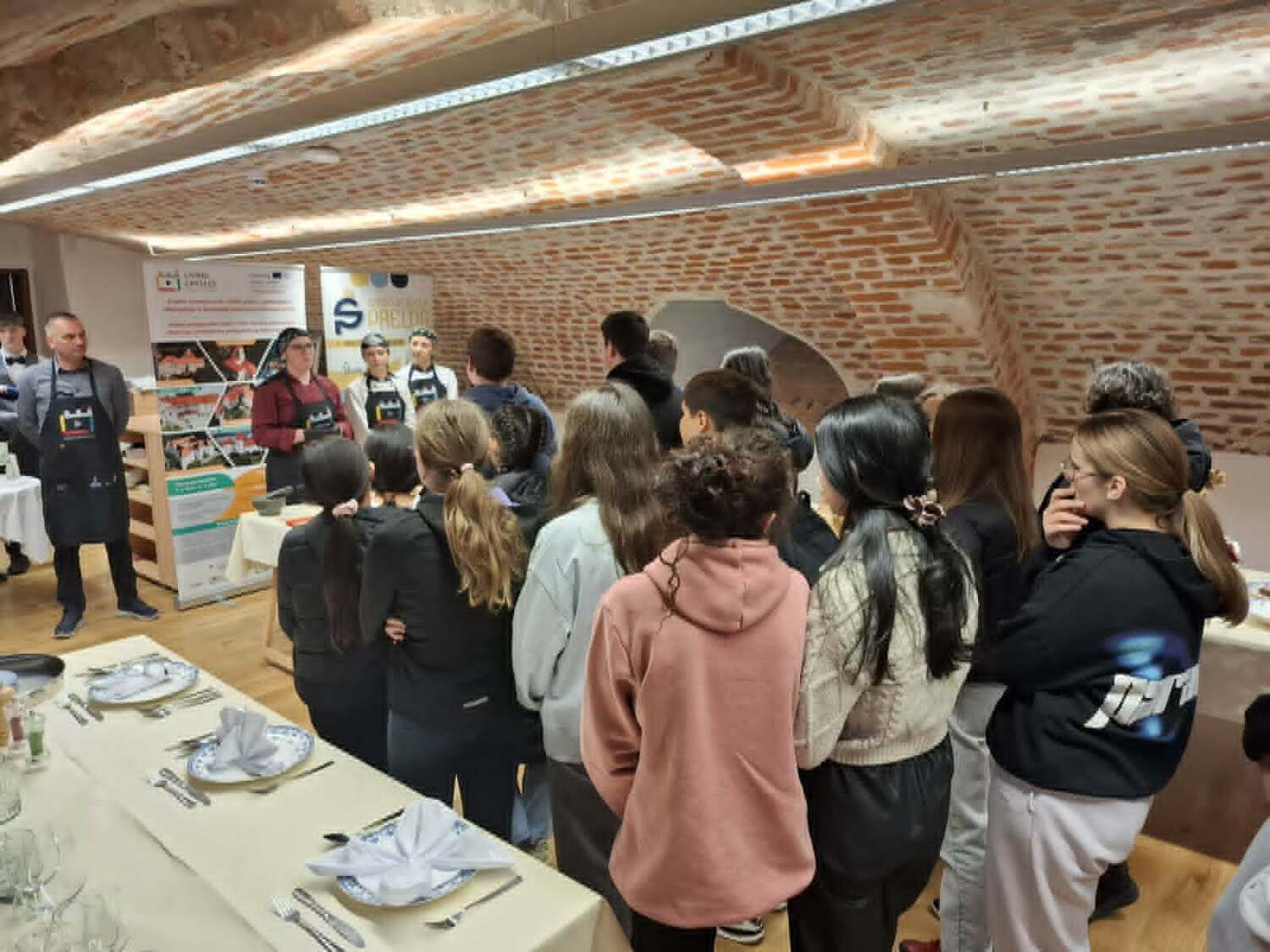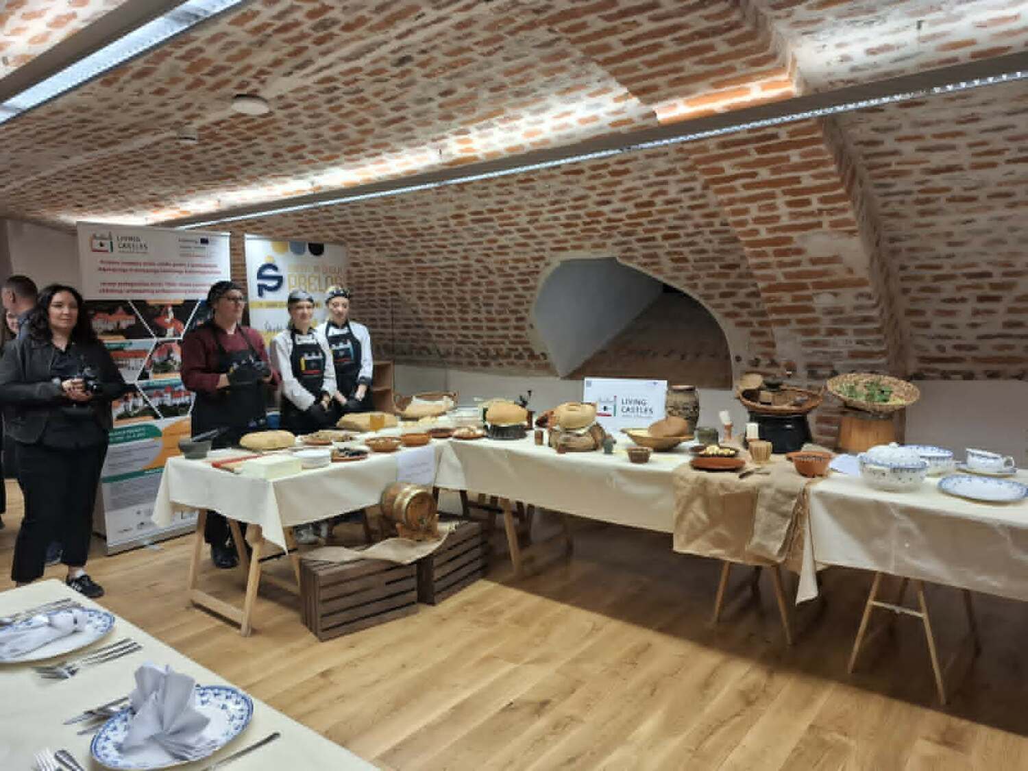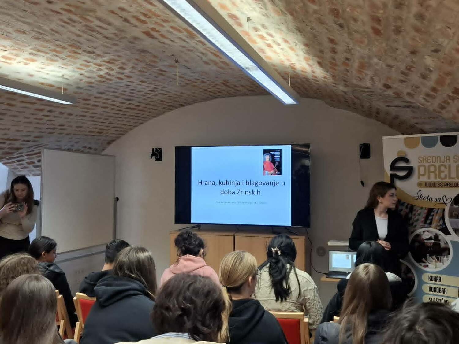 Poslušali smo zanimljivo predavanje o hrani, kuhinji i običajima blagovanja u vrijeme obitelji Zrinski. Učenici Srednje škole Prelog, uz podršku svojih mentora, pripremali su tradicionalna jela kakva su se nekoć posluživala u obitelji Zrinski pa smo tako mogli kušati jelovnik na kojem su se našli razni tradicionalni specijaliteti, uključujući namaze, hladne salate te domaće napitke poput soka od bazge, jabuke i mente.