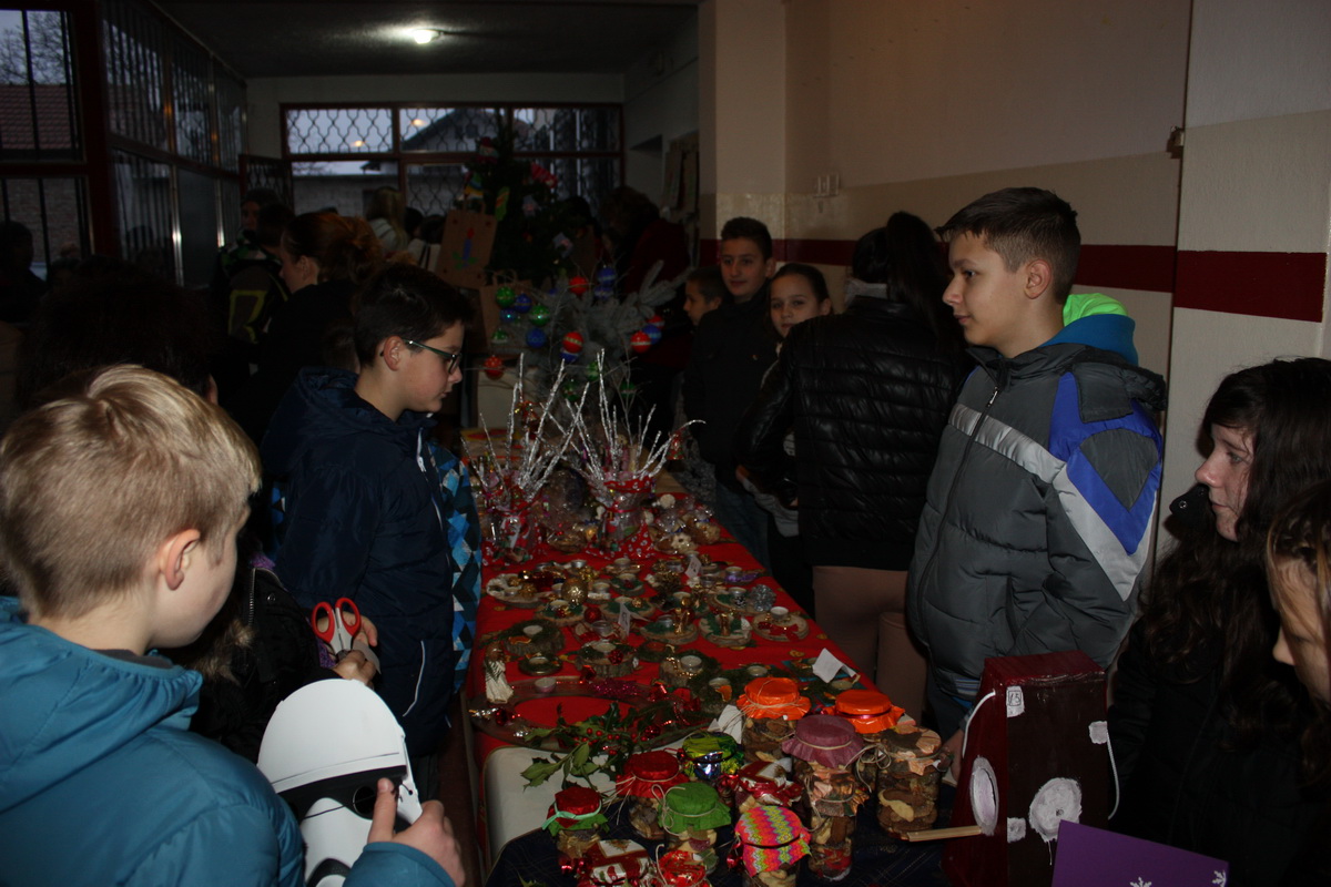 Na božićnom sajmu su se našli svakojaki prigodni predmeti, ukrasi, kolači i još mnogo toga što su svojim ručicama, uz pomoć svojih teta i razrednika, izradili polaznici predškole te učenici razredne i predmetne nastave. Kao što smo već prije napomenuli, sav prihod od prodaje na sajmu će biti namijenjen za opremanje dječjeg igrališta u sklopu naše škole pa zahvaljujemo svim posjetiteljima koji su kupnjom na božićnom sajmu pomogli ostvarenju našeg projekta.
