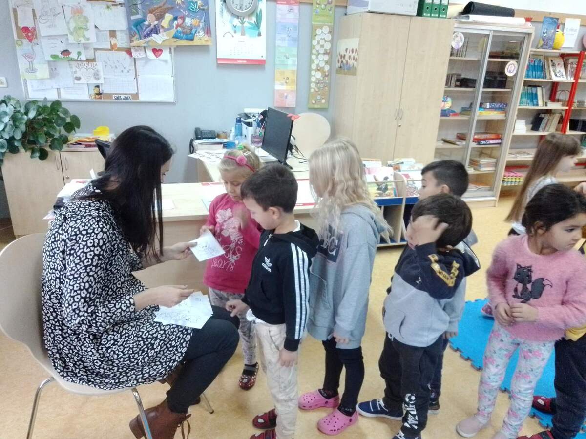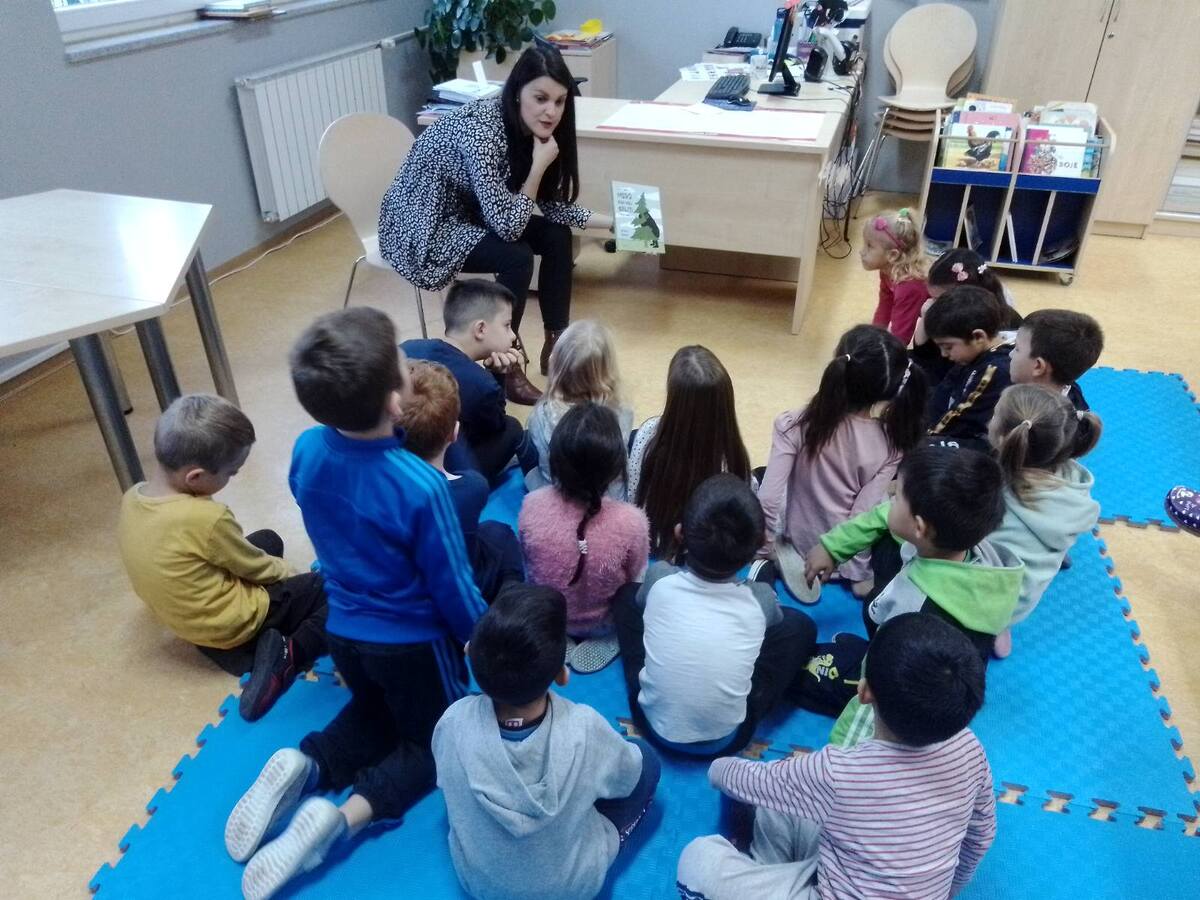 Najmlađi i najslađi za sam kraj, djeca iz triju skupina odslušala su slikovnicu Medo koji voli grliti, aktivno sudjelujući u raspravi nakon čitanja i kreativni zadatak koji su uspješno odradili. Najživlje je bilo kad su sami mogli potražiti slikovnicu i prelistati je. Djeca vole prostor knjižnice i rado mu se vraćaju. Ovakvi susreti najbolje opisuju važnost poticanja čitalačke pismenosti od najranije dobi i njezine važnosti za daljnji obrazovni sustav.