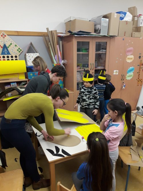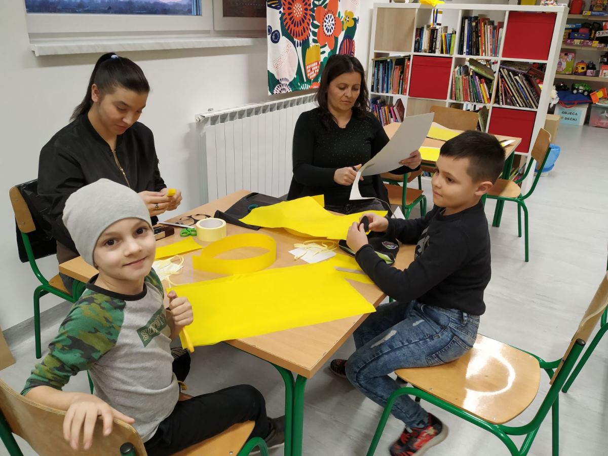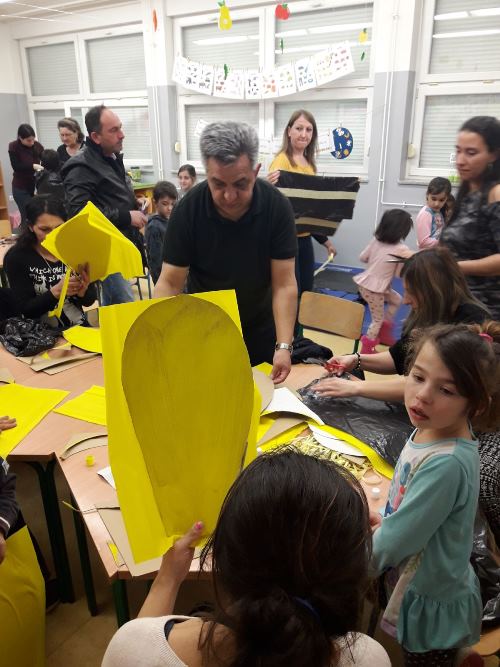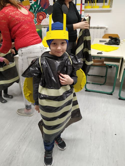U srijedu, 19. veljače 2020. godine, održana je radionica izrade maske. Radionici su prisustvovali roditelji i djeca predškolskih skupina "Cvjetići", "Medenjaci" i "Tigrići". Crne vreće, žute trake, hamer papir, krep papir, malo boje i malo kartona bili su potrebni da nastanu maske pčelica. Kako nam je bilo i što smo napravili, pogledajte na fotografijama.