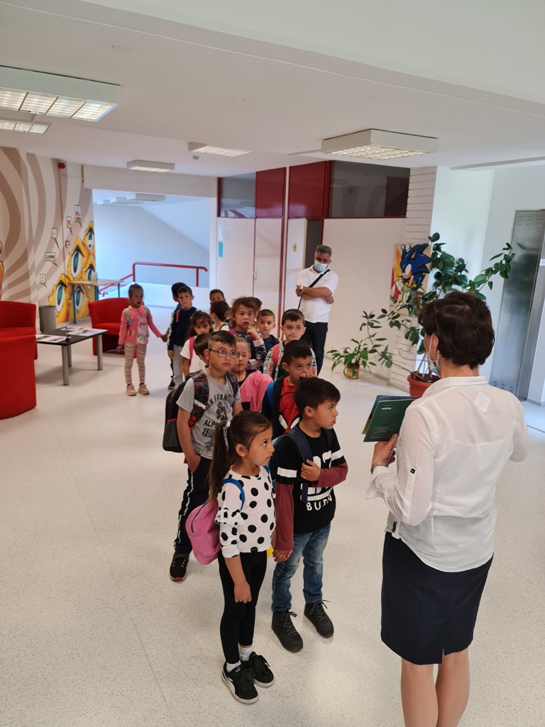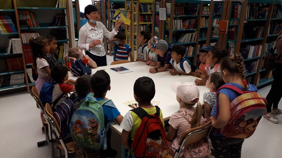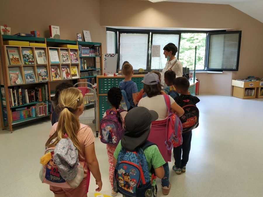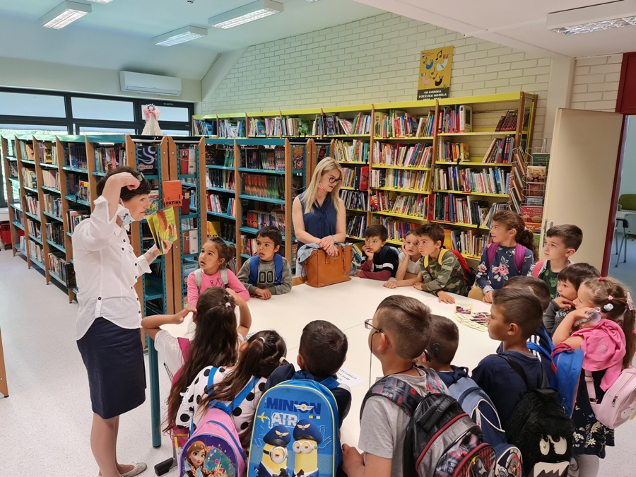 Najprije smo posjetili Knjižnicu Nikola Zrinski u kojoj nas je dočekala knjižničarka Blaženka Hunjadi-Bašek. Djeci je pokazala dječji odjel knjižnice, multimedijalnu dvoranu i igraonicu "Bamblek". Na kraju im je pročitala slikovnicu "Kapica za ježa" koja se djeci jako svidjela.