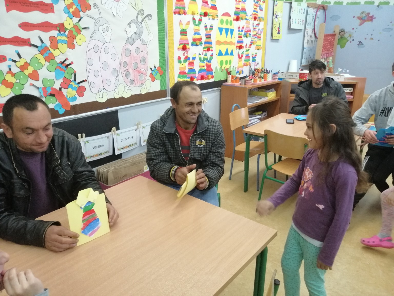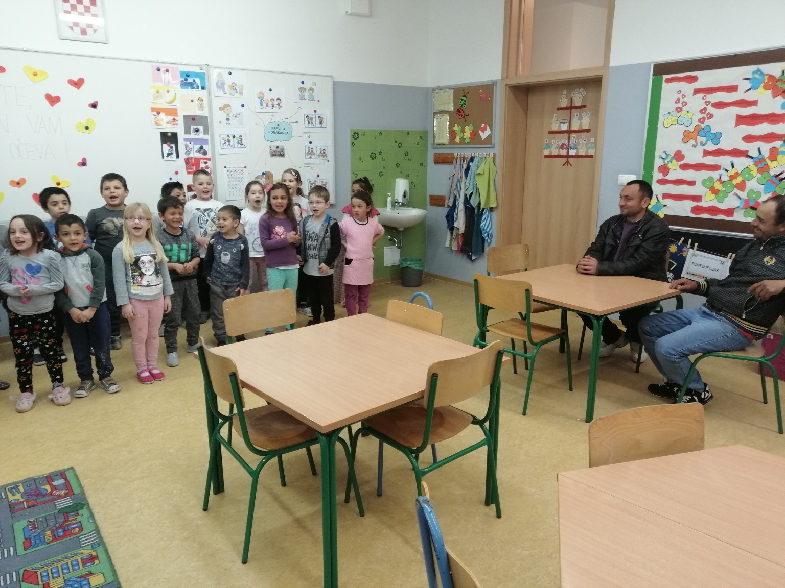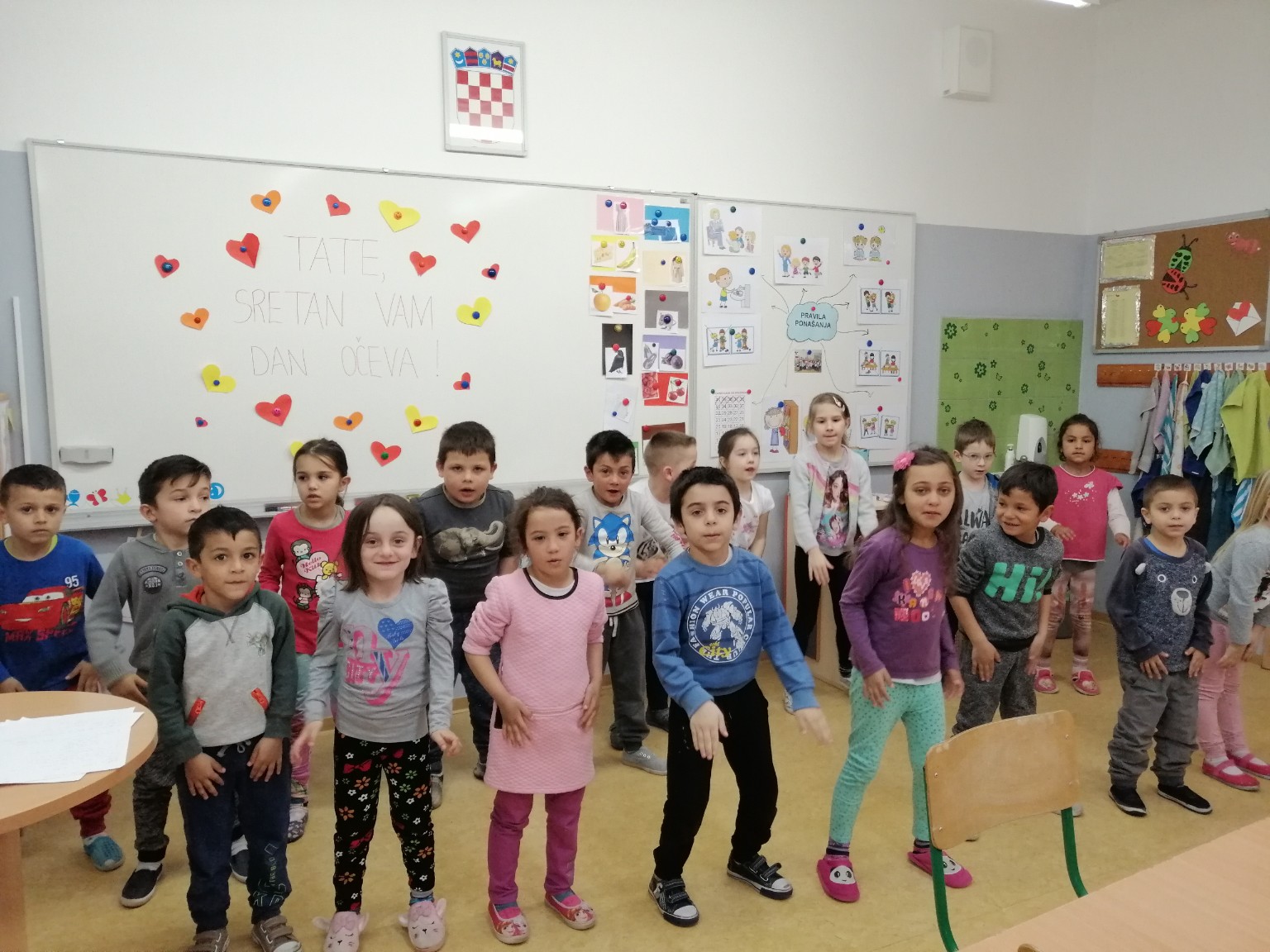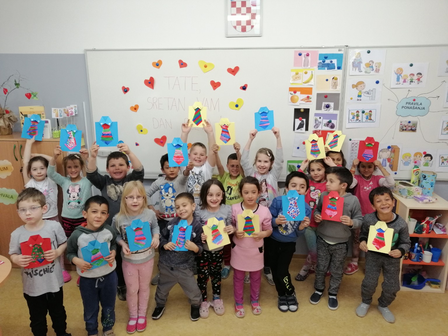 „Mravići“ su taj dan prigodno obilježili. Potaknuti razgovorom, pjesmicom, pričom imali su priliku izraziti svoje emocije i iskustva vezane uz svoje tate. Posebno uzbudljivi trenutak bio je kada su dočekivali svoje očeve u predškoli. Razveselili su ih i raznježili kratkim programom te čestitkama koje su za njih strpljivo, pažljivo i s ljubavlju izradili.