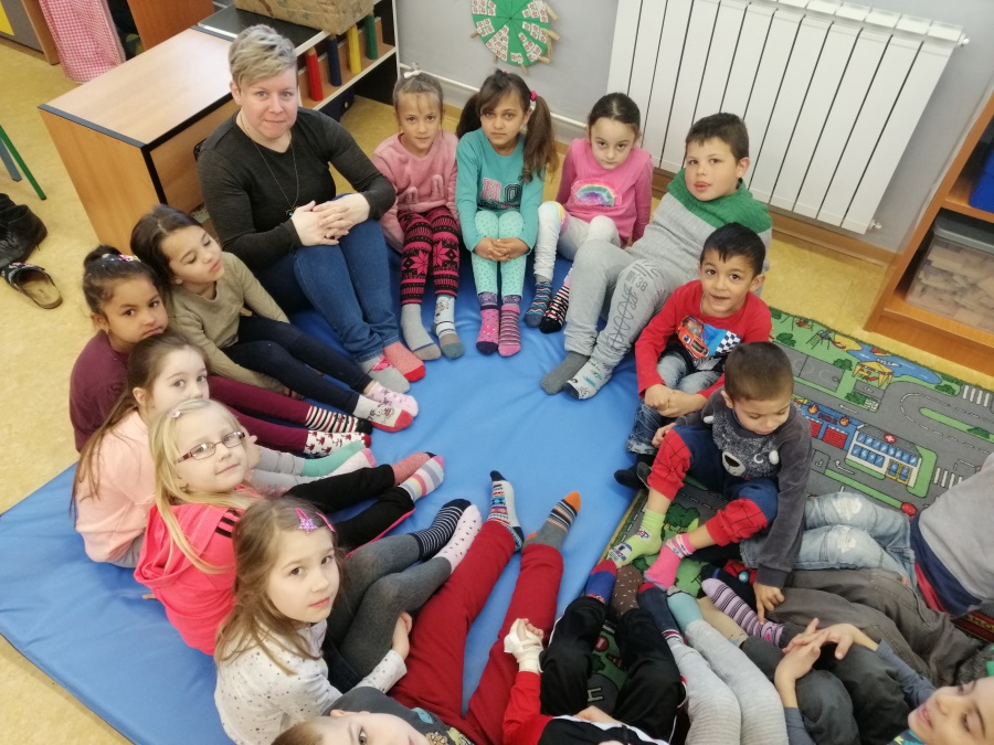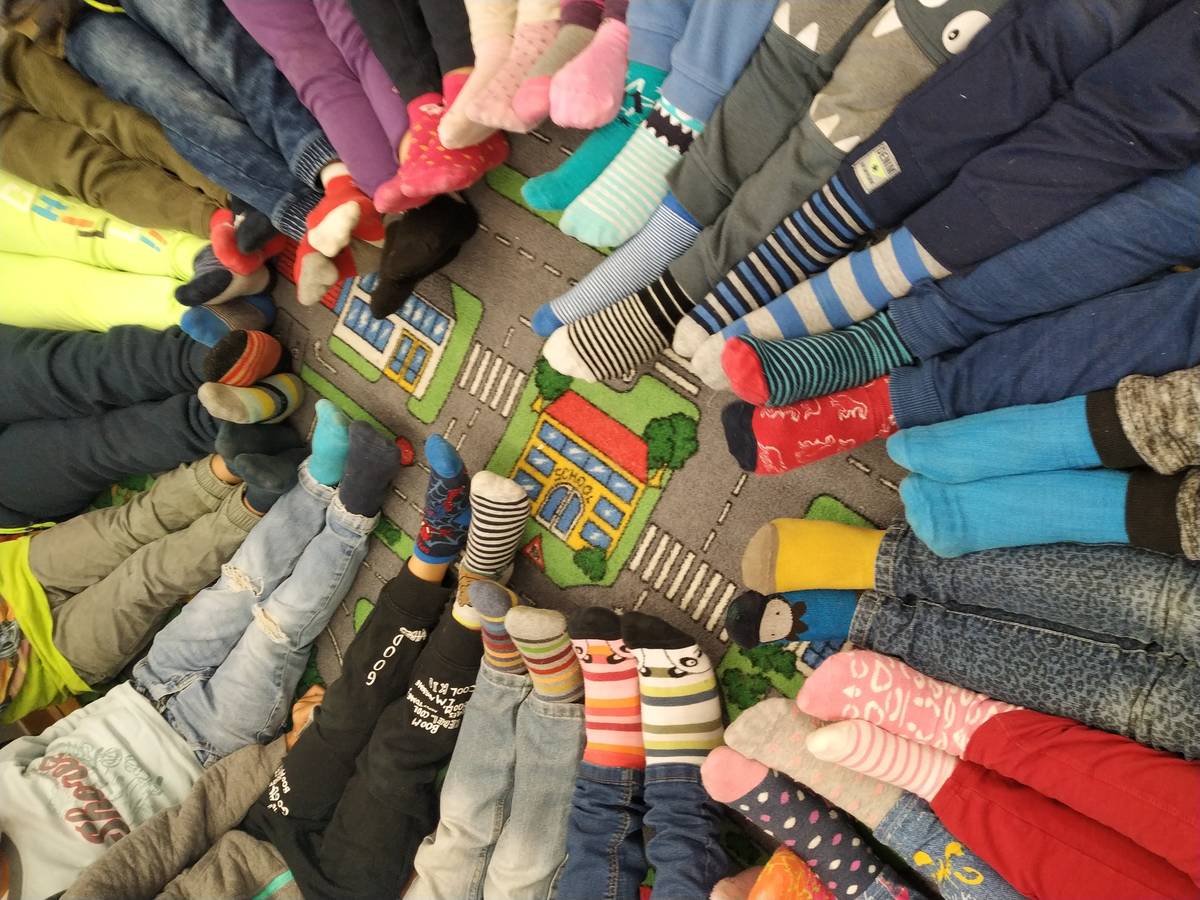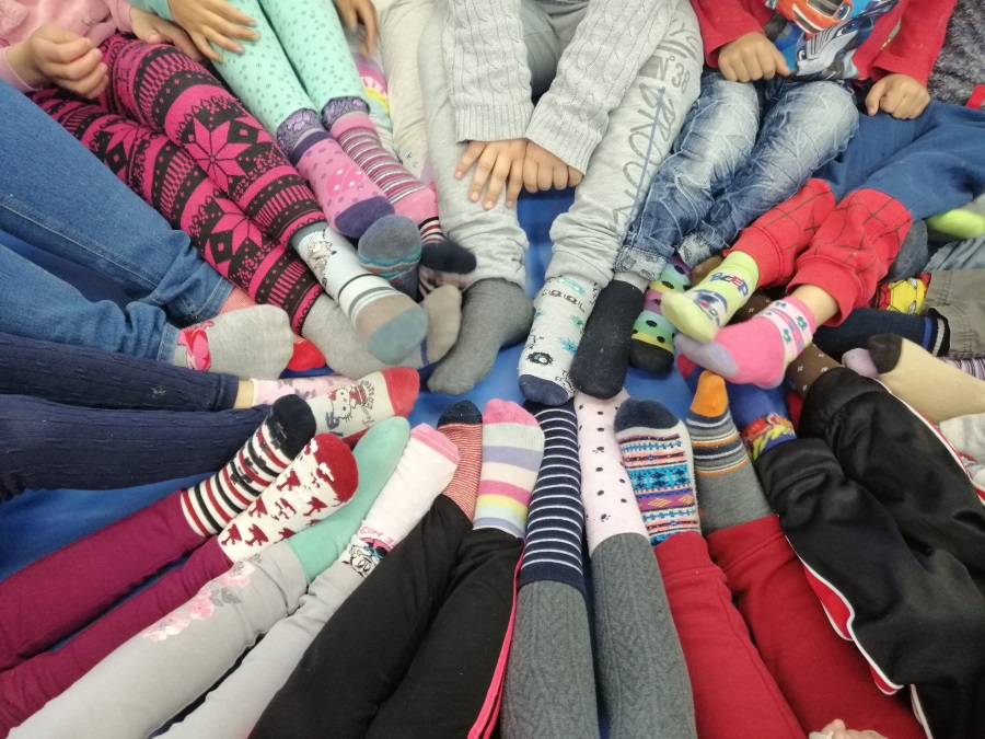 Predškolci iz skupine "Mravići" i "Ribice" su danas obuli različite čarape kako bi istaknuli važnost integriranja djece s Down sindromom u odgojno obrazovne ustanove. Razgovorom smo došli do zaključka kako se svi razlikujemo te kako različitost treba prihvatiti i poštivati.