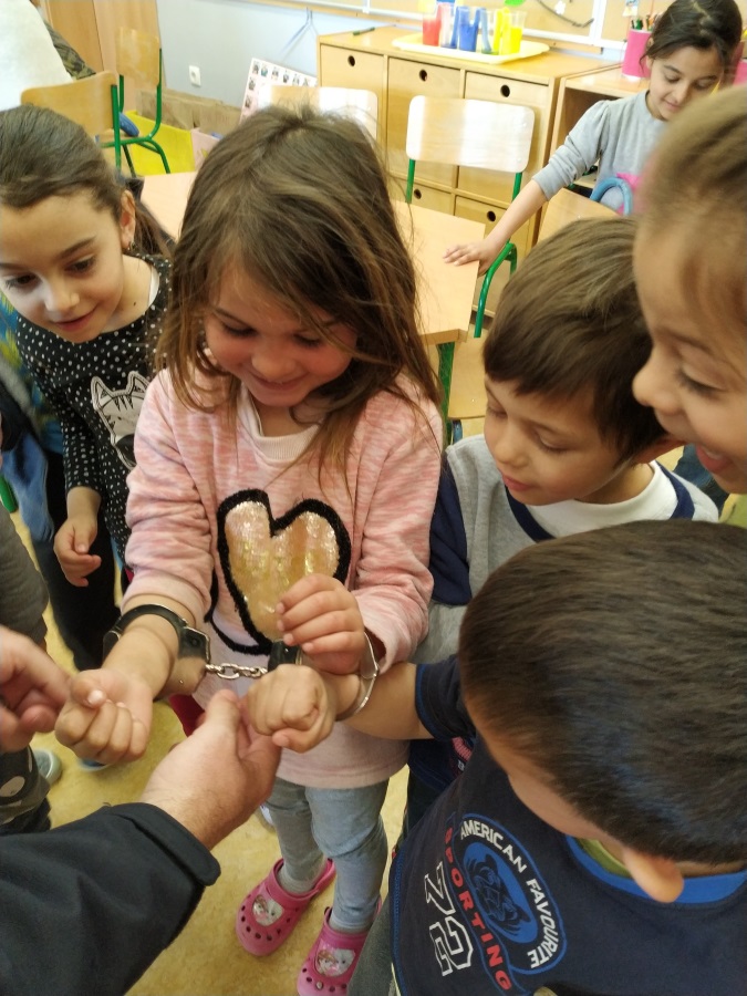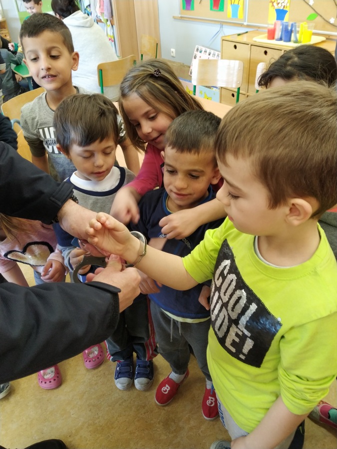 Djecu je zanimalo zašto policajci nose pištolj te kada ga smiju upotrijebiti, čemu služi palica i sprej kojeg nose oko struka. Najviše nam se dopalo kad su nam dozvolili da isprobamo lisice.